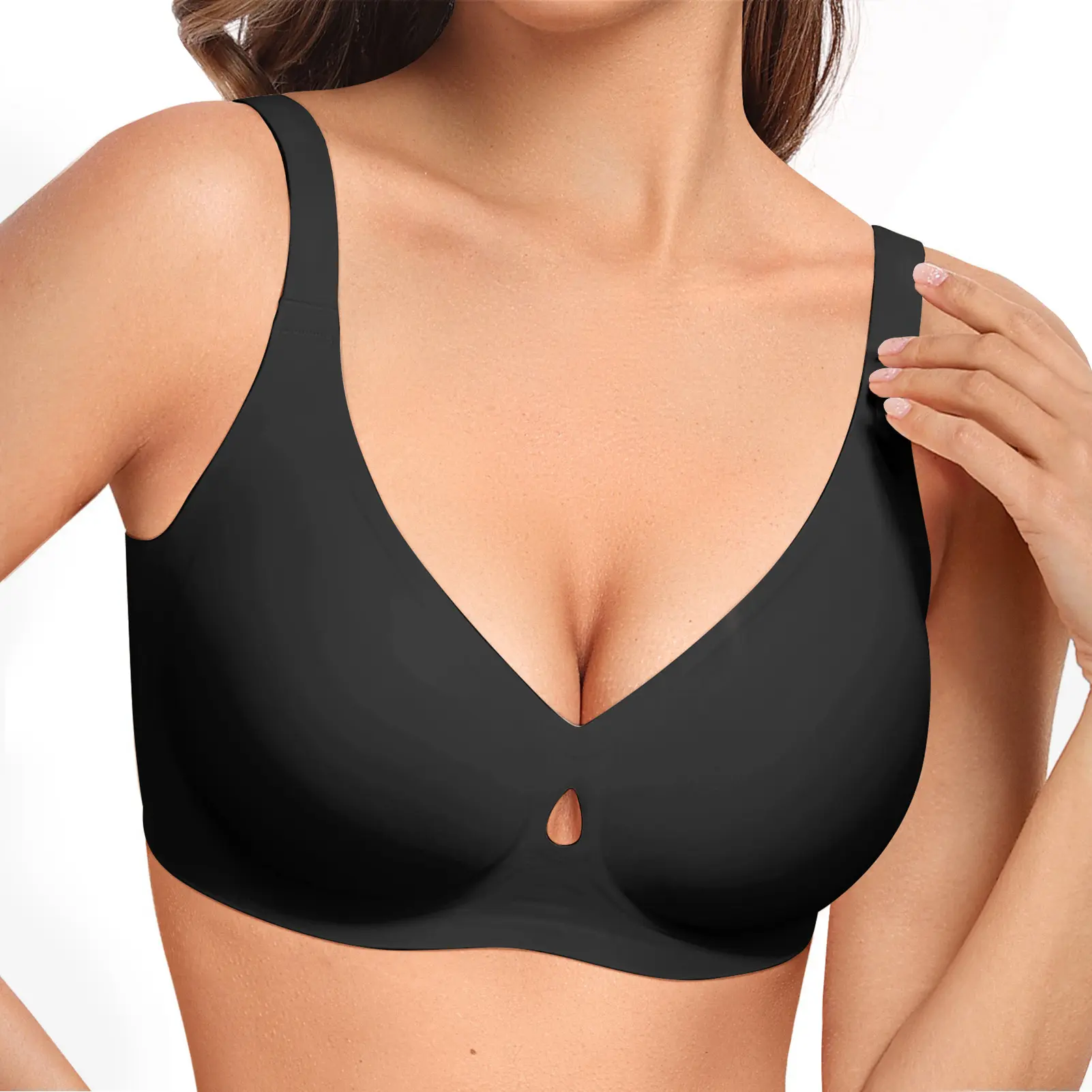 Ā·ćBreathable Hollow Water Drop DesignćDelicate water drop cutouts combine breathability and elegance in OEAK wireless bra, creating a comfortable experience while enhancing comfort and fit. The breathable hollow cutouts enhance airflow, keeping you cool and dry during extended wear and improving overall comfort.