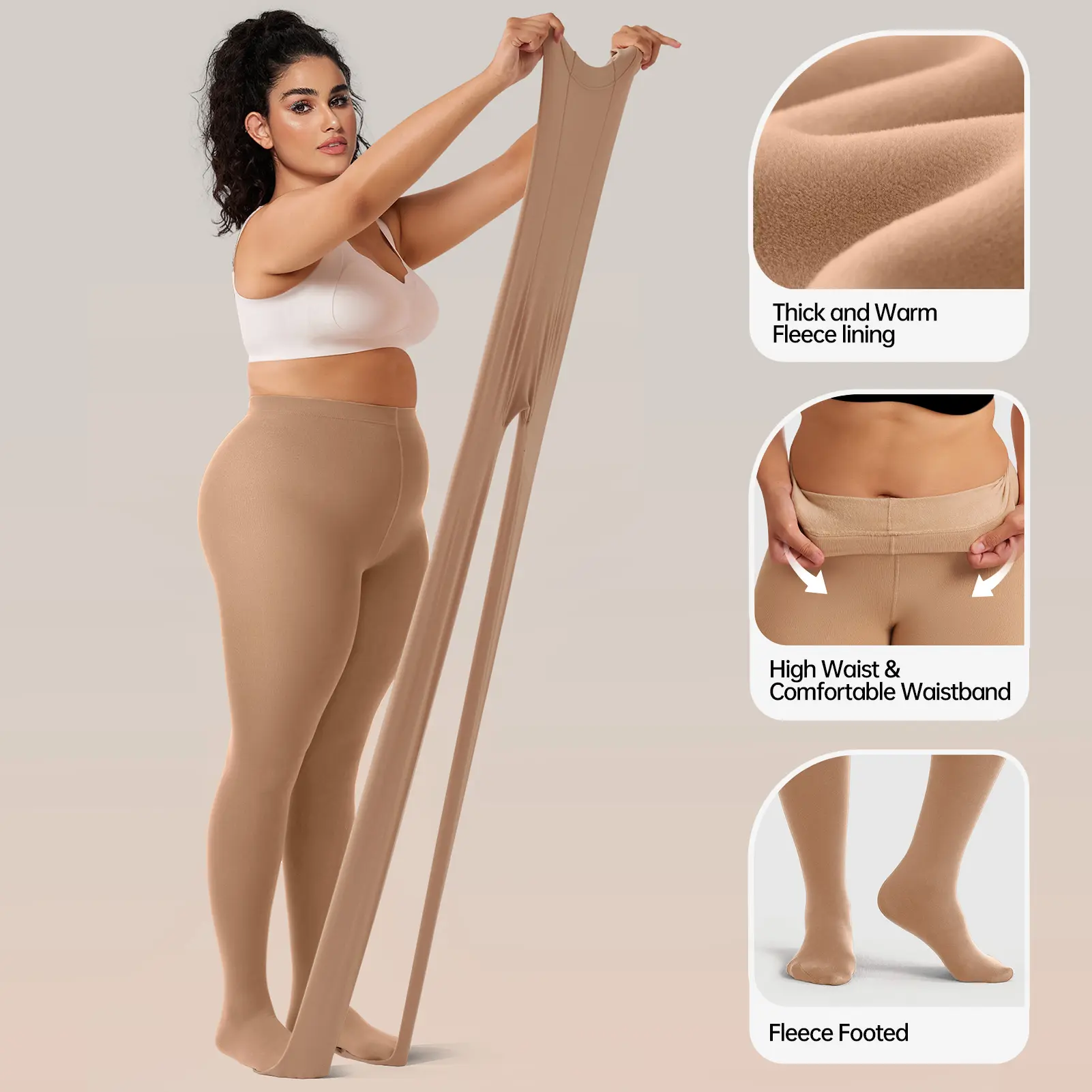 Very comfortable and light and it’s freezing outside and I don’t feel a thing. Covers cellulite perfectly giving a smooth look. 265 pounds for reference