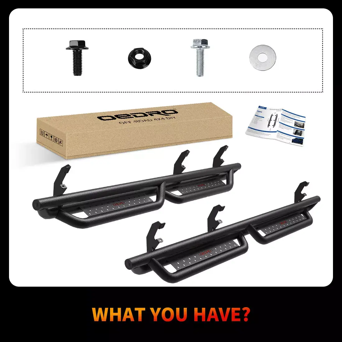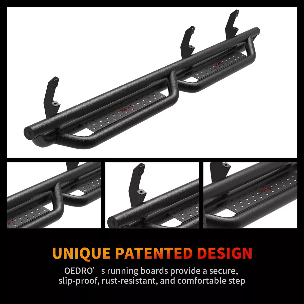 Strong and Durable: Unique powder coating offers exceptional rust and corrosion resistance so you can drive under any condition. The laser cutting step plate achieves a non-slipping step surface and reinforced grip. These step bars proven to handle up to 550 lbs. without bending