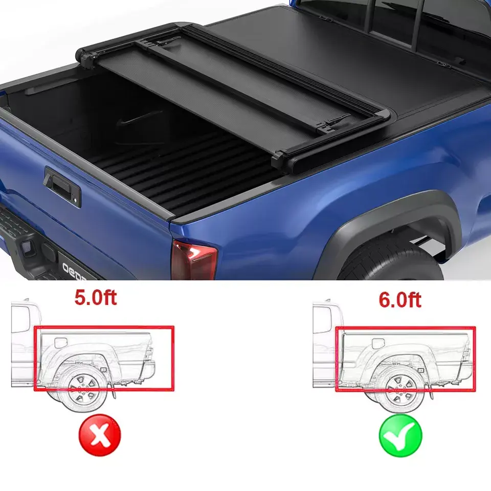 5. [Fit 2016-2023 Toyota Tacoma] 6 Ft Bed, Soft Tri-fold Truck Bed Tonneau Cover, Fleetside with Track Rail System(Excl. Trail)