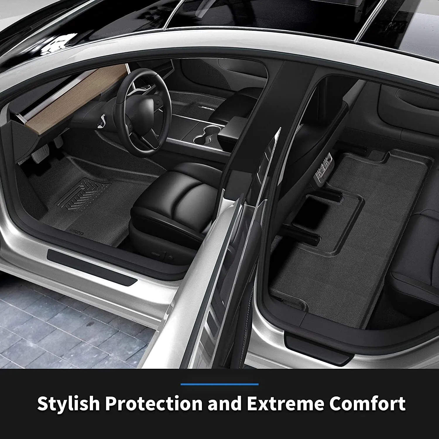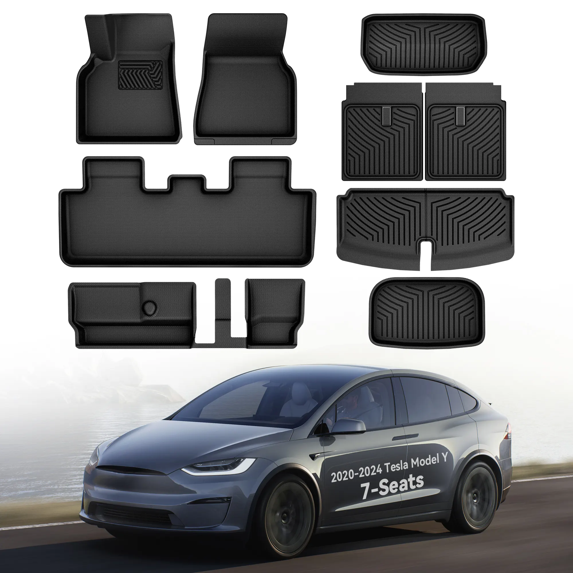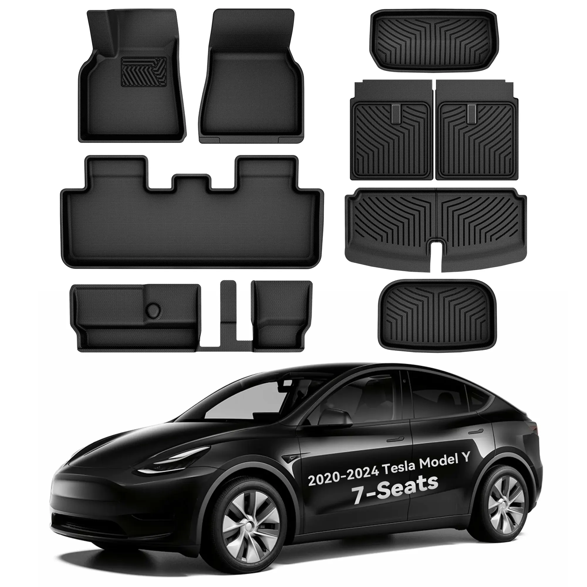 Triple-Layer Markless Mat: 2021-2023 2024 Tesla Model Y car floor liners feature a multi-layer design for aesthetics, durability, and practicality; The 1st layer is made of XPE material, which is waterproof and exhibits excellent crease recovery; Protect against spills and stains, absorbs impacts, and grip firmly to minimize stepping marks