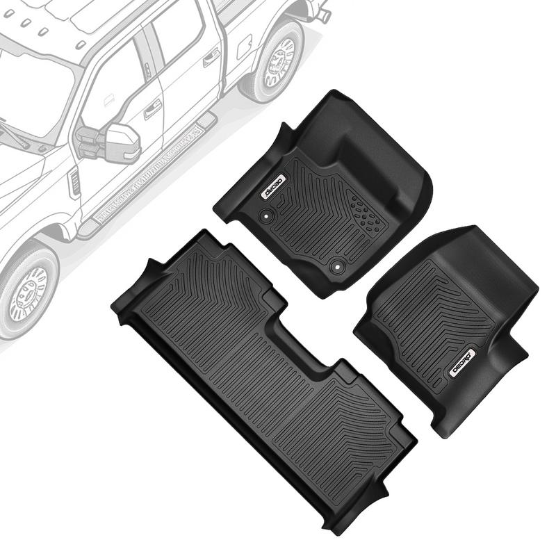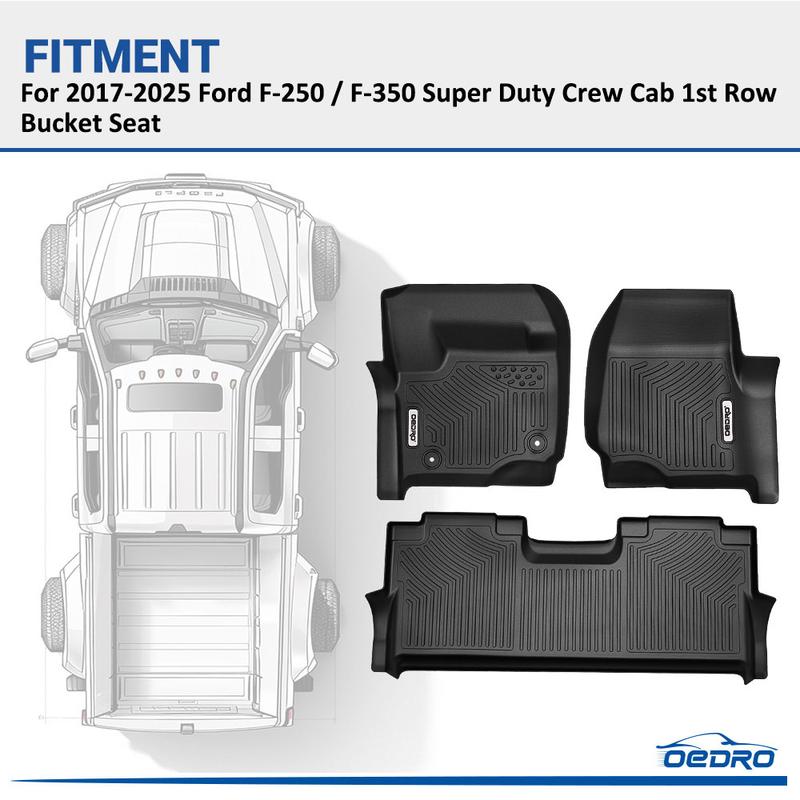 Custom Fit: Advanced 3D laser scanning technology ensures a glove-like fit while eliminating pedal interference for a smoother and safer driving experience, Fit for: 2017-2025 Ford F-250 / F-350 Super Duty Crew Cab(4 full size doors), with 1st row Bucket Seats and rear Under-Seat Fold-Flat Storage