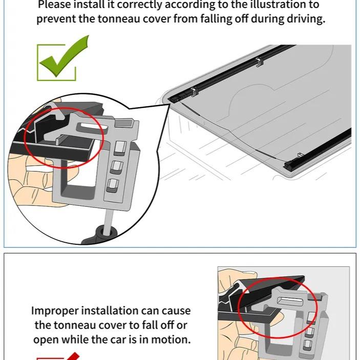【HEAVY DUTY TOP COVER】 Composed of double layer PVC, YITAMOTOR’s tonneau cover has been thoroughly tested for UV protection and superior tensile properties. Built-in powder coated rails and aluminum clamps are included for trouble-free installation and formidable stability