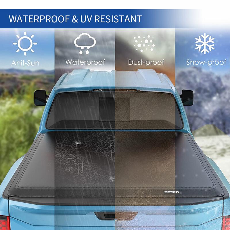 Great Experience: Tri-fold truck bed tonneau cover gives your truck the perfect combination of security, convenience and appearance. It is easy to install and the tailgate lock turns your truck bed into a completely secure trunk which is snow proof and dust-proof