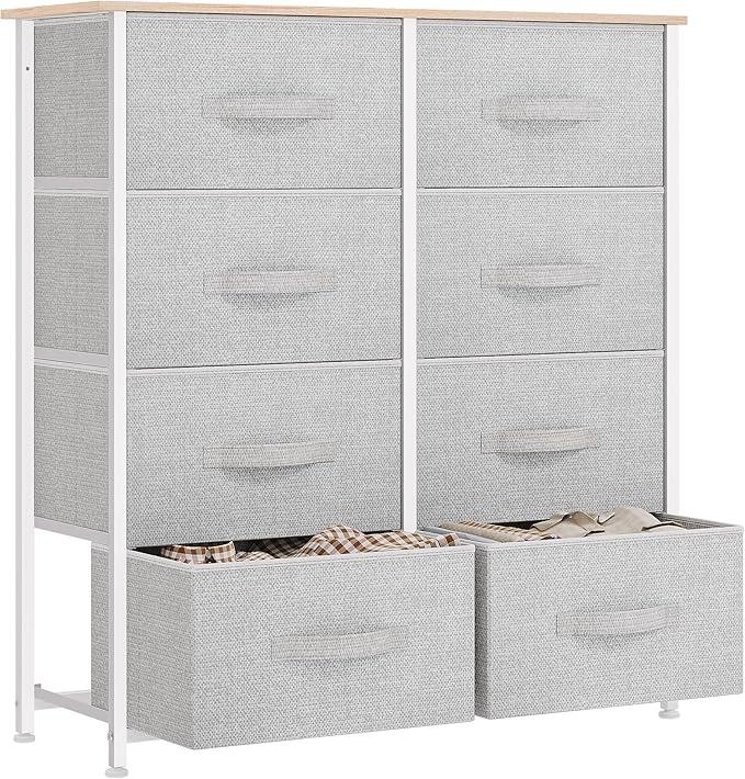 QUALITY CONSTRUCTION- Made of reliable metal frame and durable MDF wooden top; 8 removable and foldable drawers; Easy pull handles help conveniently open and close the drawers; 4 adjustable plastic feet help protect your floor from scratches
