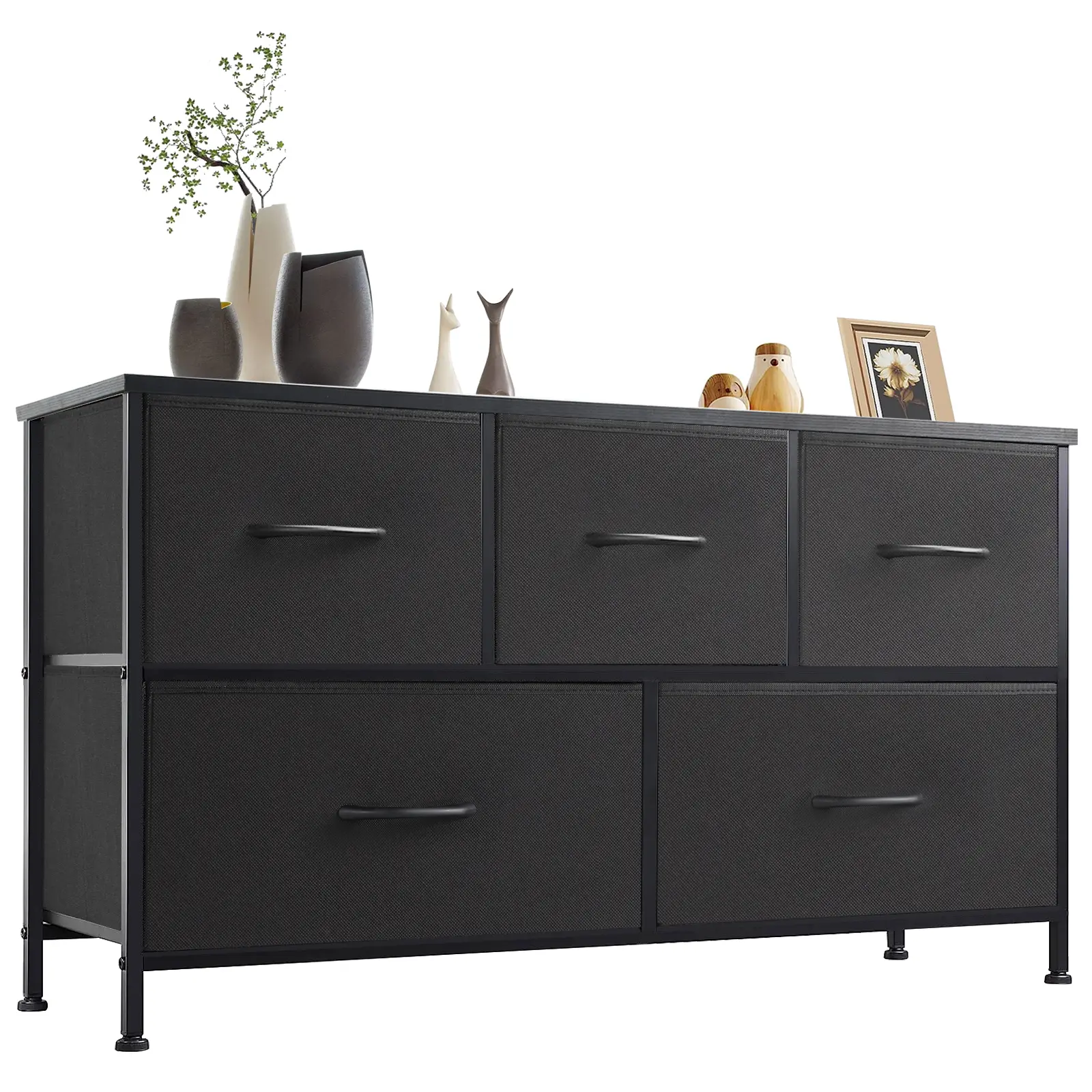 ·【Large Capacity】This black dresser offers 5 drawers provide sufficient space for organizing of daily necessities. 2 L and 3 M drawers are designed to satisfy your various storage needs. The wooden top of bedroom dresser is great for keeping the most-used items within your reach. Drawer dimensions: L (11.8" L x 11.8"W x 8.5" H) ;M(12"L x 11.4"W x 8.3" H)