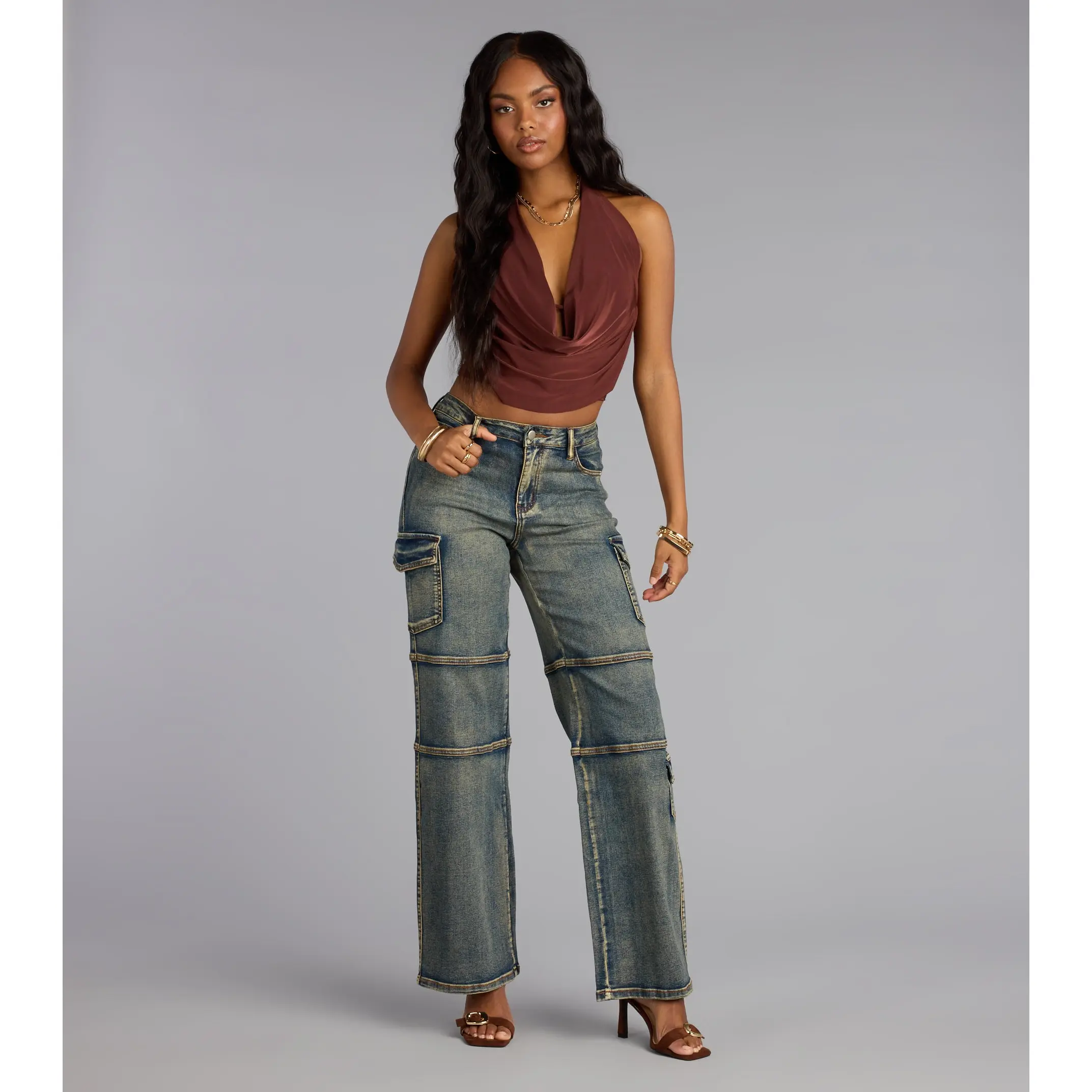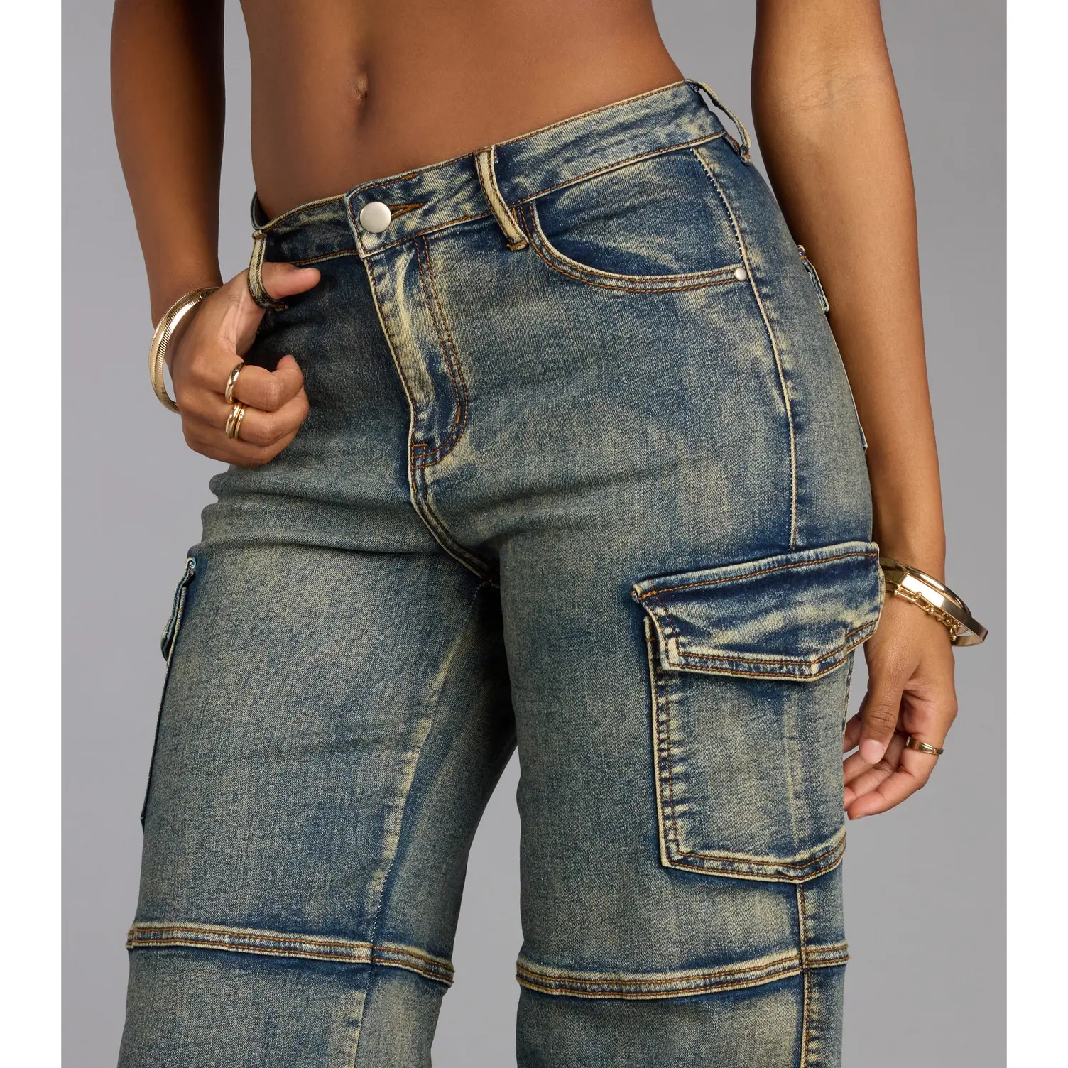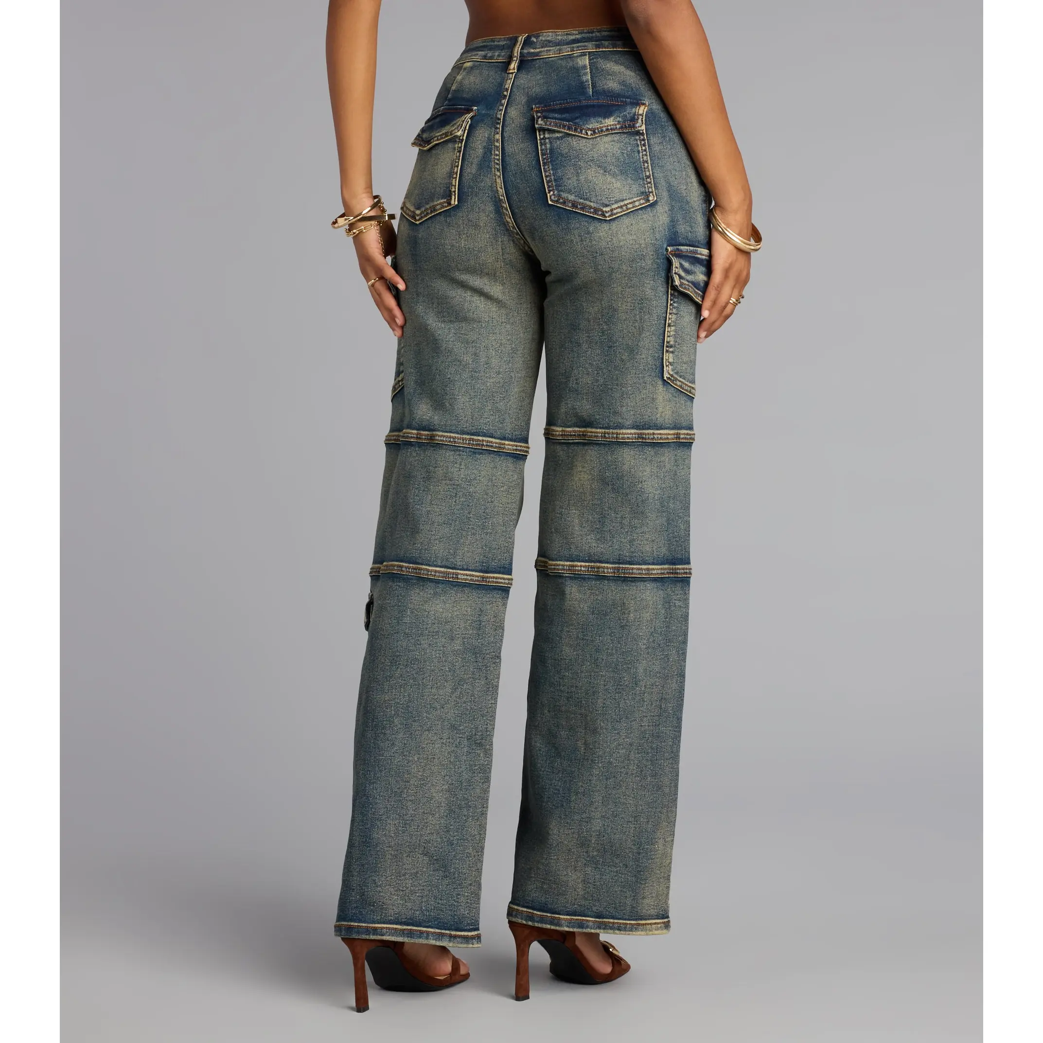 Meet the cargo jeans that serve effortless street style. With paneled seaming, pocket details, and a straight-leg silhouette, these jeans give a cool-girl edge to any look. Pair them with a crop top and heels to turn heads.
