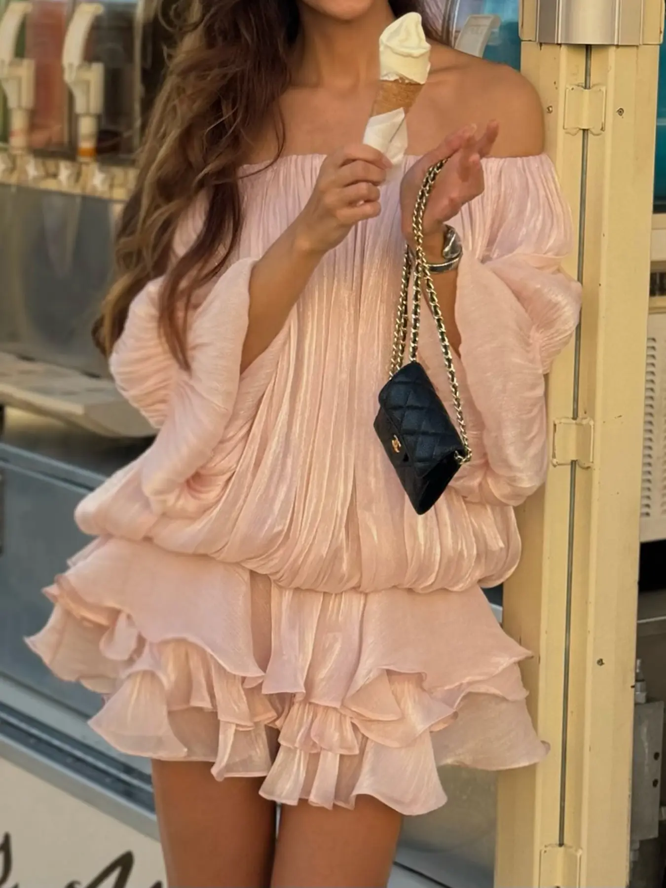 Off-Shoulder Pleated Ruffle Mini Dress #tiktokshop#dress #minidress #partydress #sexydress