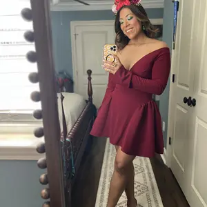 Hey everyone! I just had to share my thoughts on this stunning verbal holiday dress! It's incredibly flattering and really gives you that beautiful doll-like body shape we all love. But i highly recommend fashion double sided tape. The shoulder part does run slightly big. Overall!! Stunning dress!