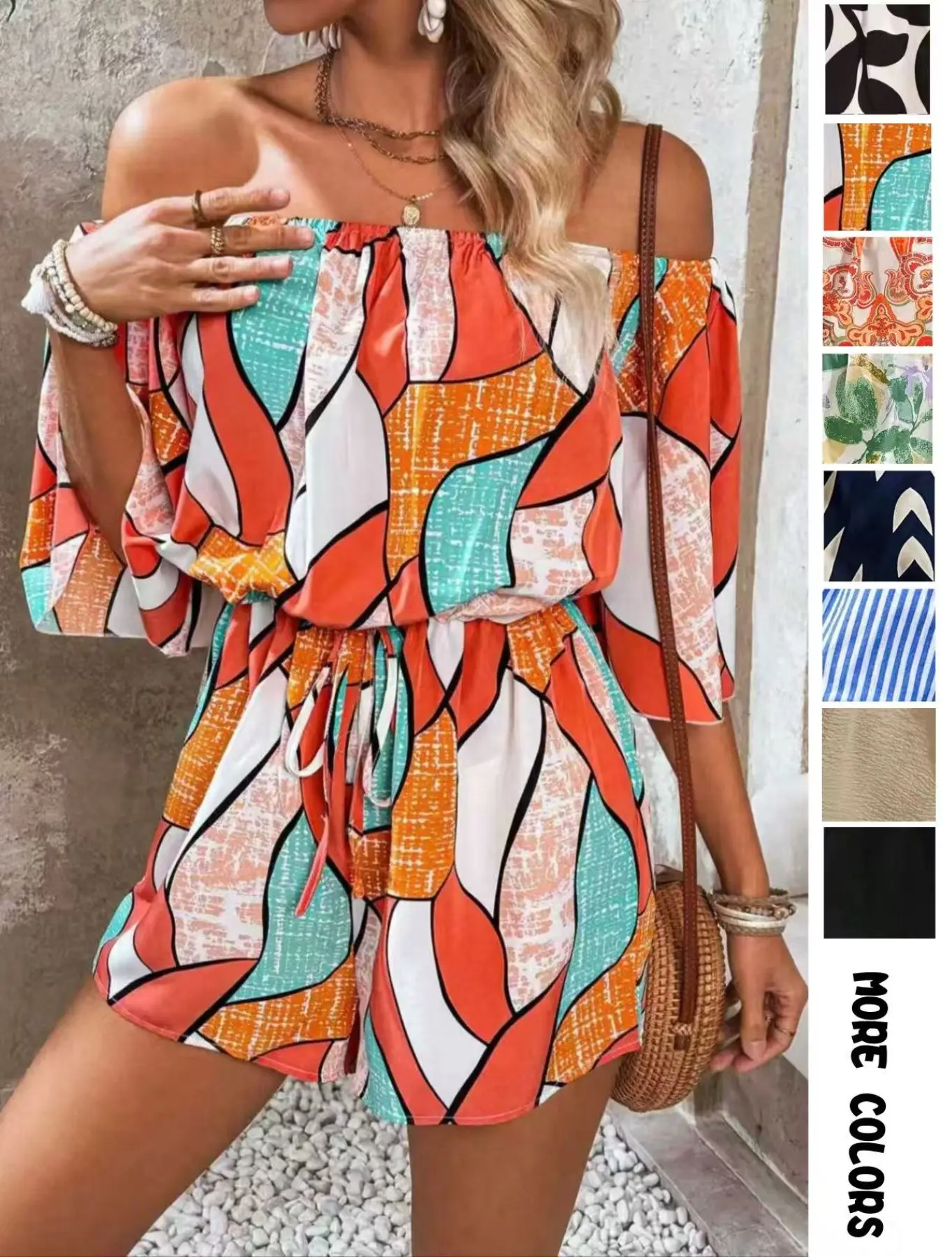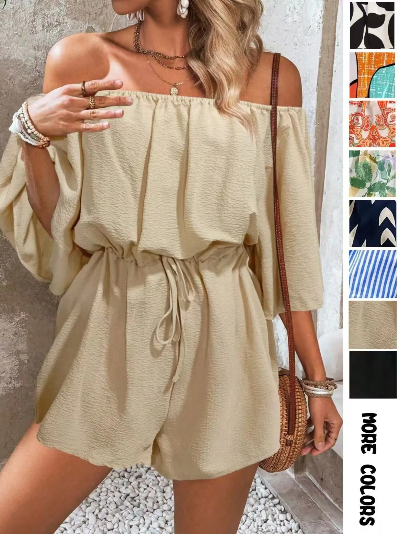 This fits so many body types. The ability to wear it on or off the shoulder. Flattering on everyone! Pair with a heel or wear with flats and a cute hat. Light to pack and fancy enough for lunches or sunset cruise