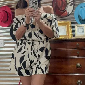 This is such a cute and comfortable romper. Fits true to size and love how cute the off shoulder look is