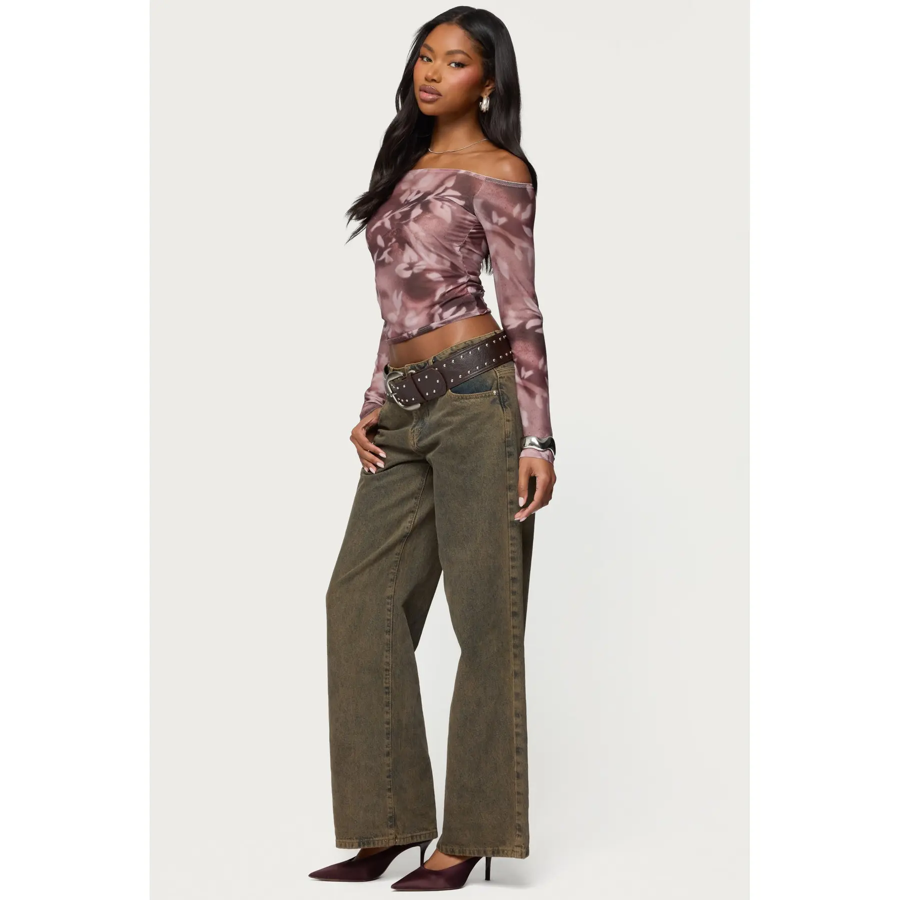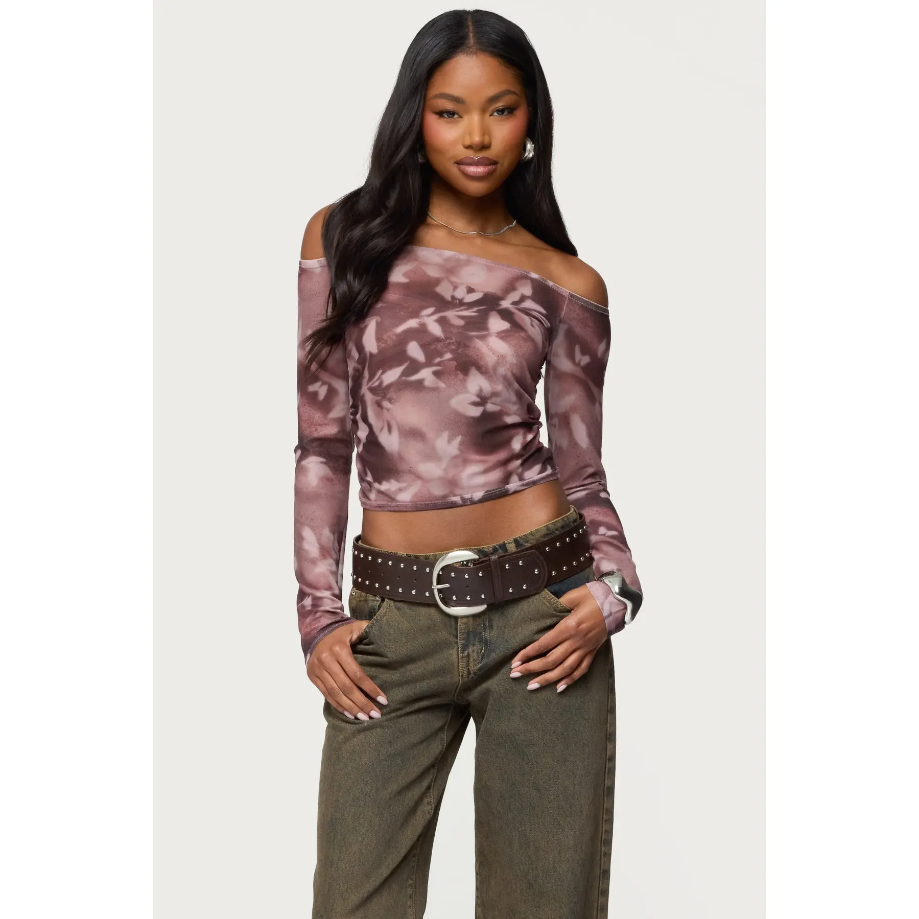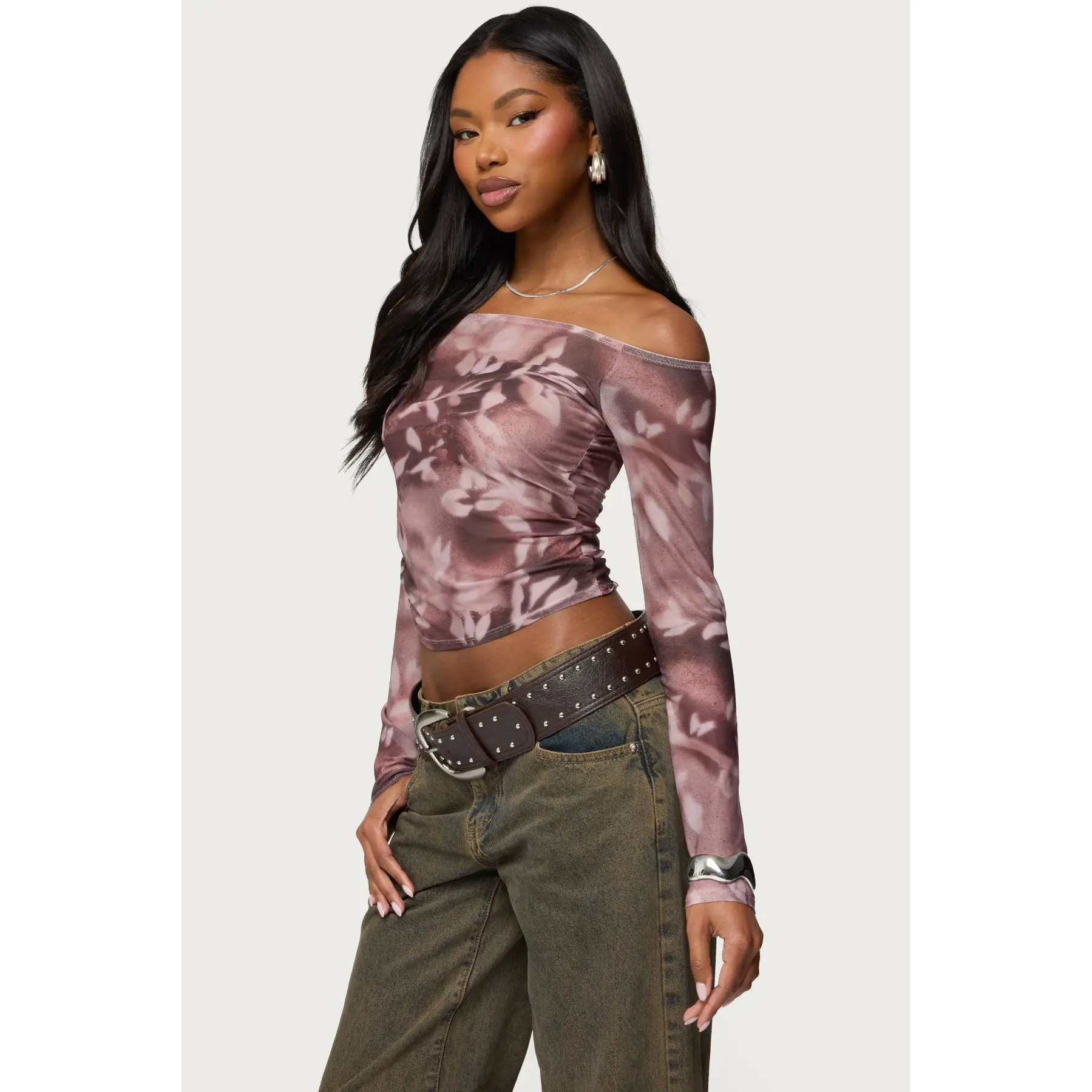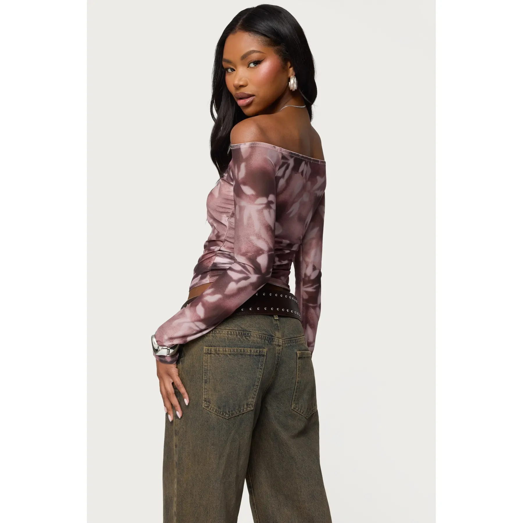 5. Off Shoulder Printed Sheer Mesh Top
