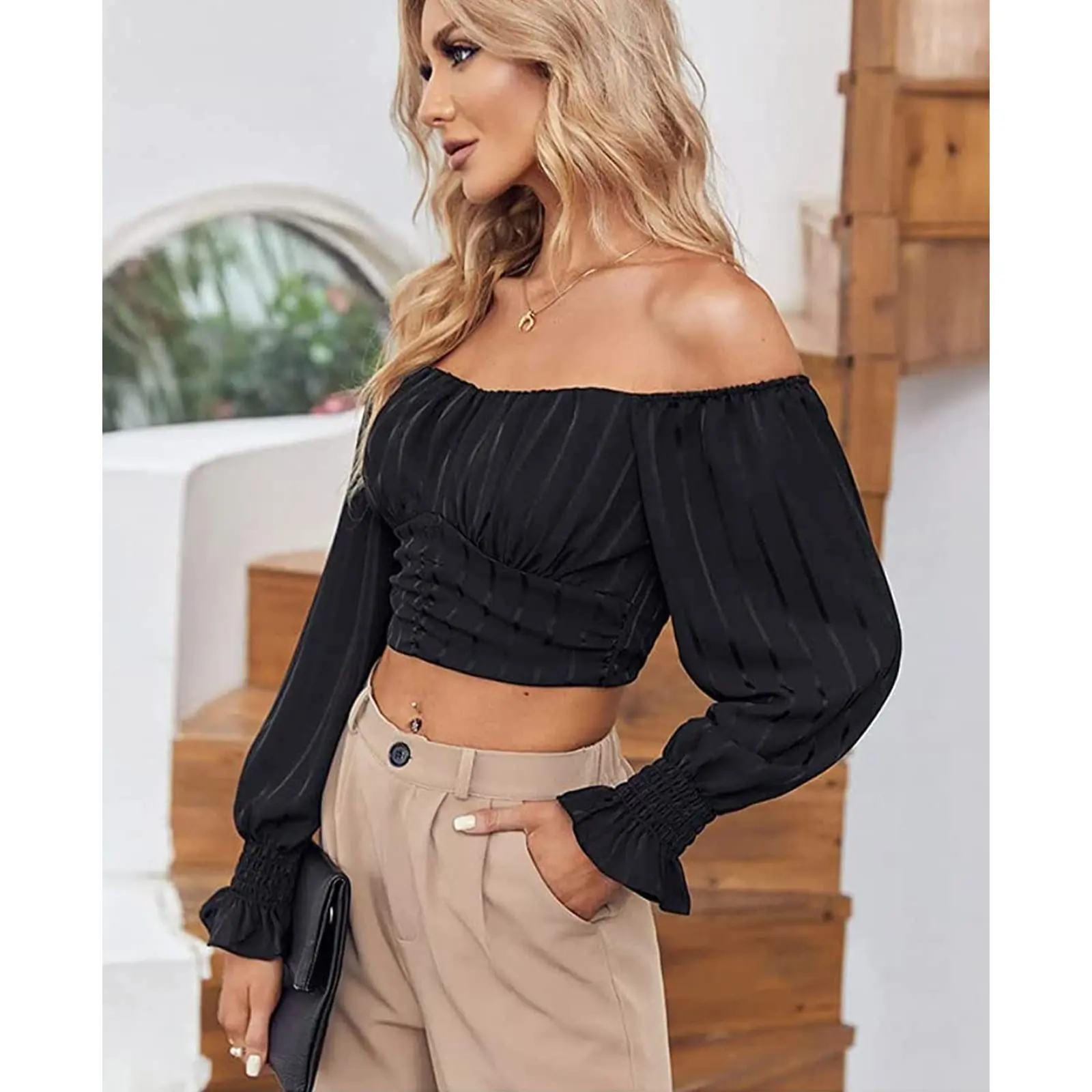 ·Chiffon Material:This Off Shoulder Crop Top for Women Summer made of 100% Polyester,Soft Comfortable Lightweight,Super Perfect for Spring Summer,Fall Daily Wear.
