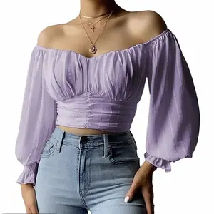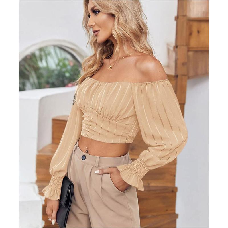 ·Chiffon Material:This Off Shoulder Crop Top for Women Summer made of 100% Polyester,Soft Comfortable Lightweight,Super Perfect for Spring Summer,Fall Daily Wear.
