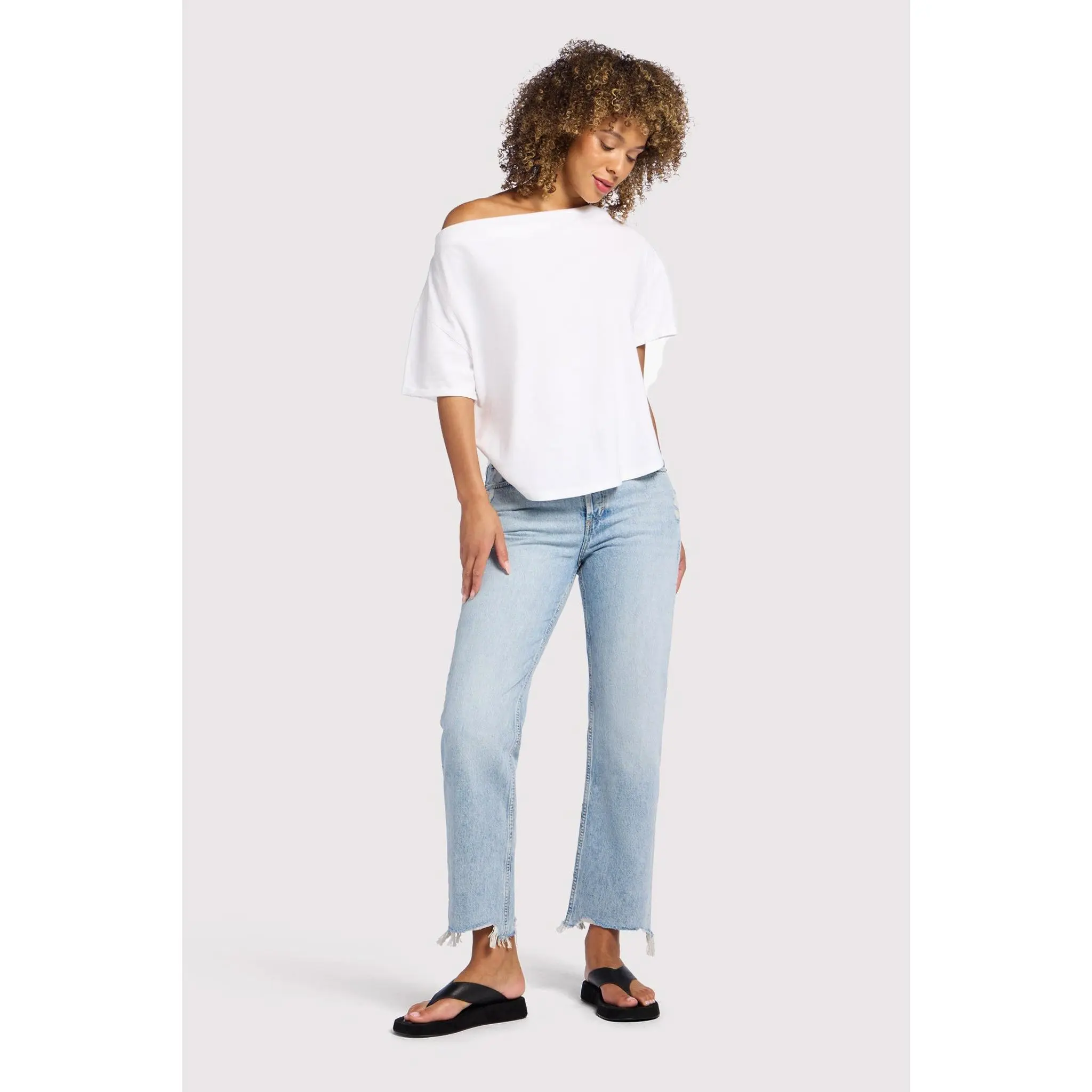 I love an off shoulder tee, and this one is a 10/10. Quality and styling makes this my new favorite tee! Hoping for a restock of XS in black and white!