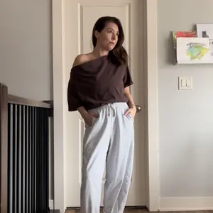I love this wayyyy more than I thought that I would! Seriously everything about it is so good. As someone who doesn’t feel confident showing my arms, this is a great way to get that elevated almost sexy look without having to show my arms! It’s so good. And you can dress it up or down! I tried it on with the nuuds sweatpants and was shocked at how cute it looked!