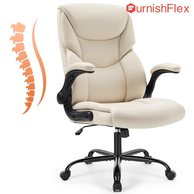 ·【Multi-Functional】 This comfortable office chair with 90° flip-up armrests offers convenience while saving you space. The backrest of the office chair's lumbar support is designed with 2-stage foam padding, which makes the lumbar force more even, even if you sit for a long time, you can keep your body relaxed.