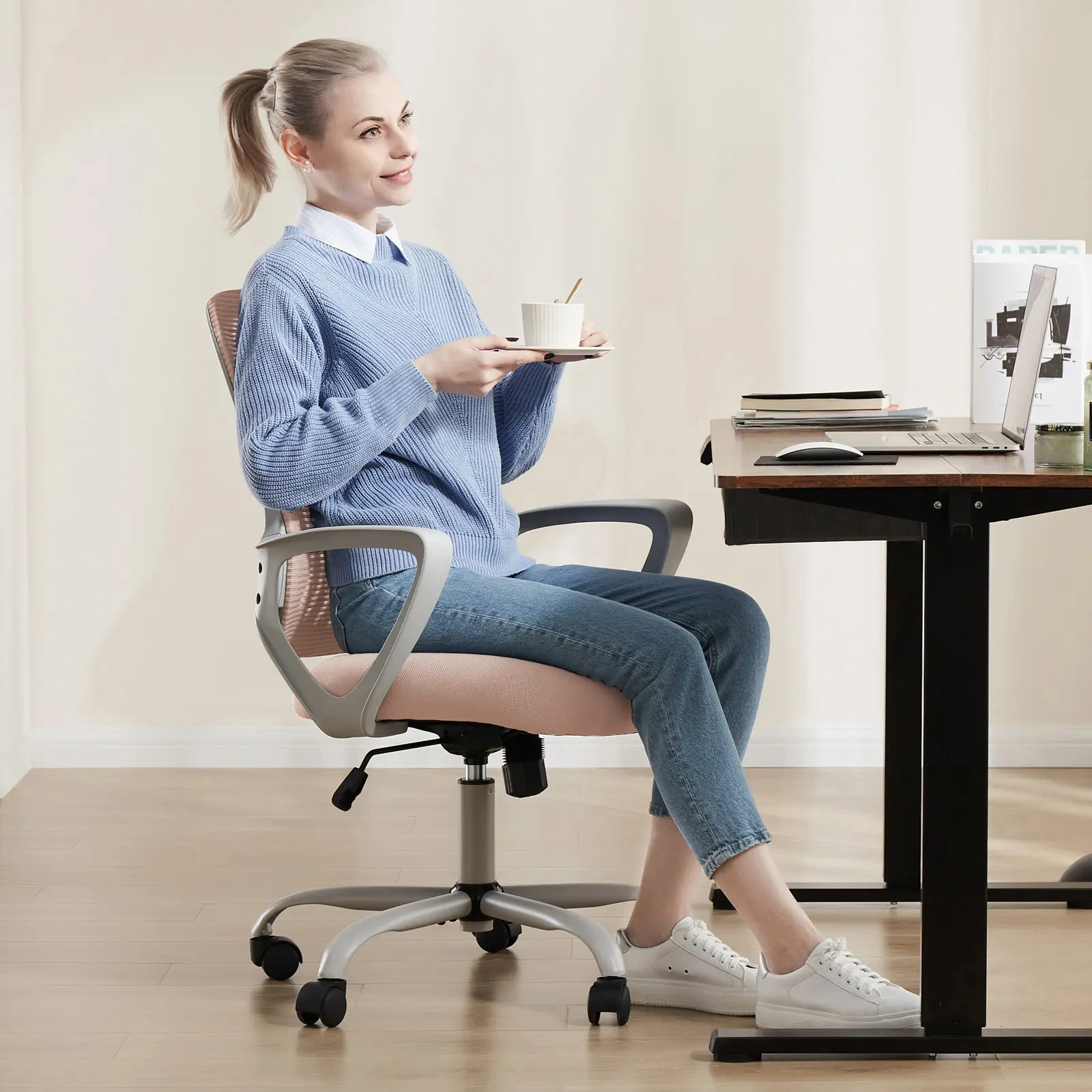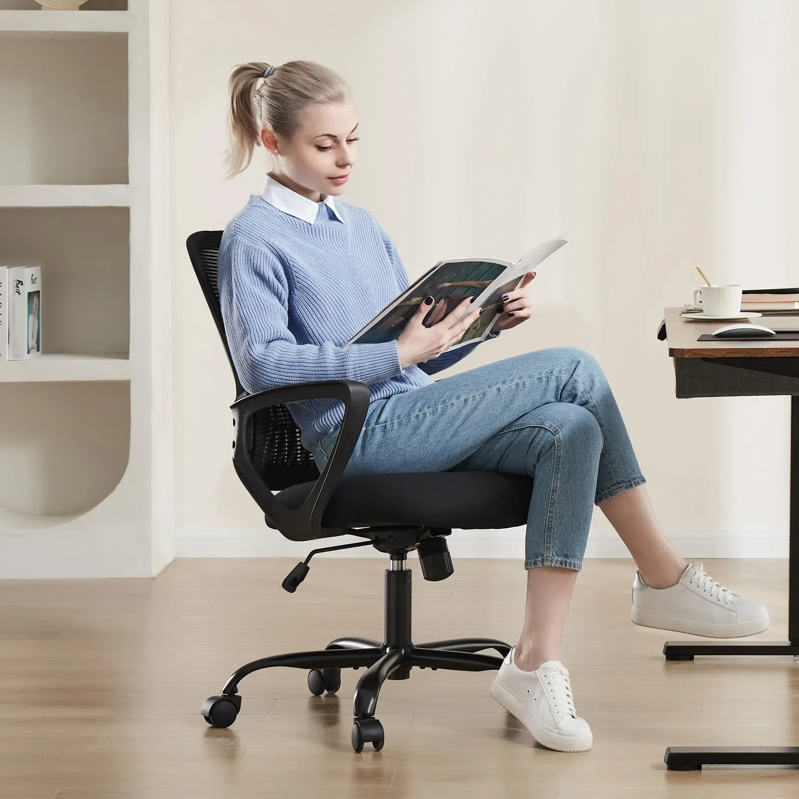·【Ergonomic Lumbar Support】- The ergonomically designed backrest of our ergonomic office chair has prominent lumbar support to fit the natural curvature of the spine. The Computer Desk Chair with a mid-back brings quality and comfort to any office.