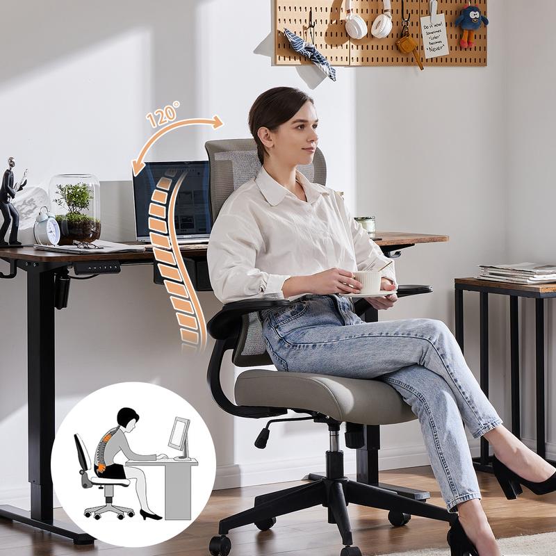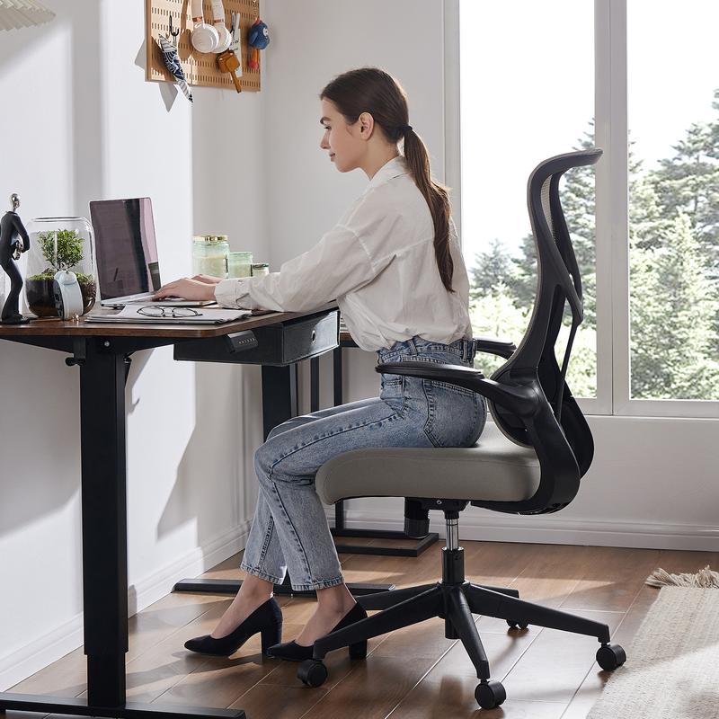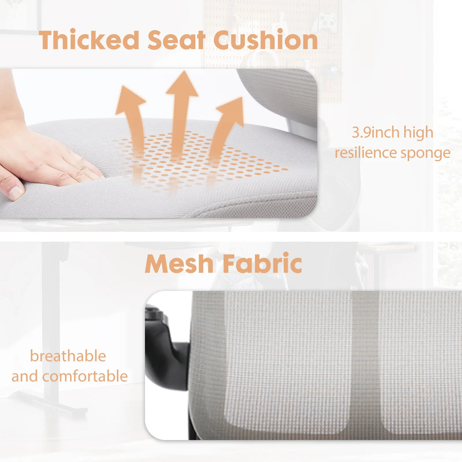 ·【Ergonomic Chair】The ergonomic high backrest design fits the human spine's curve, with the lumbar support, helping to relieve pressure on your back. The 3.94 inch thickened high-elasticity sponge concave seat cushion resists deformation and provides all-day support. Meanwhile, the breathable mesh backrest promotes air circulation in your back and avoids sweating.