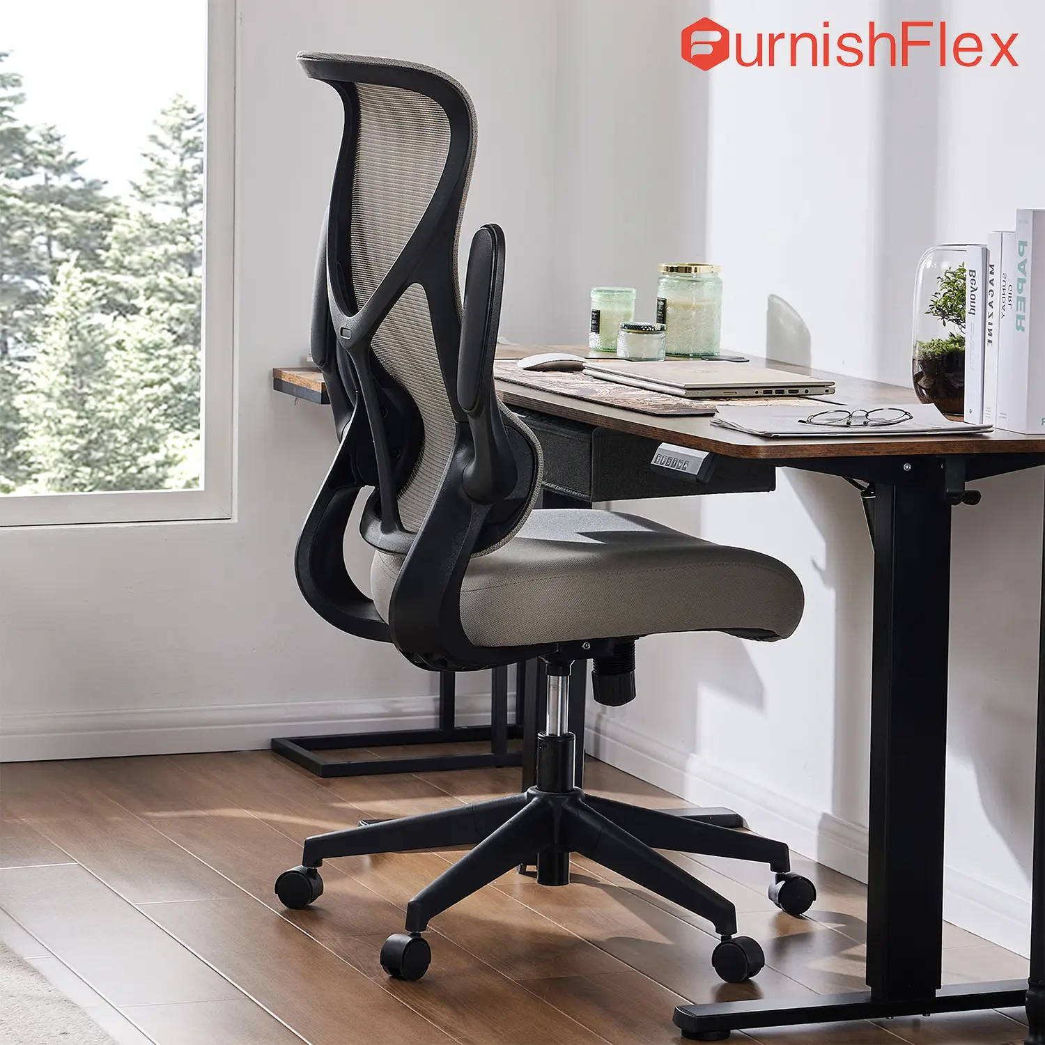 ·【Flip-up Armrests】The armrests of this tall office chair can be flipped up or put down to satisfy different needs. When the armrests are flipped up, the whole chair can be easily pushed under the table to maximize space. The wide flip-up arms of the desk chair provide comfortable support for the arms and hands.