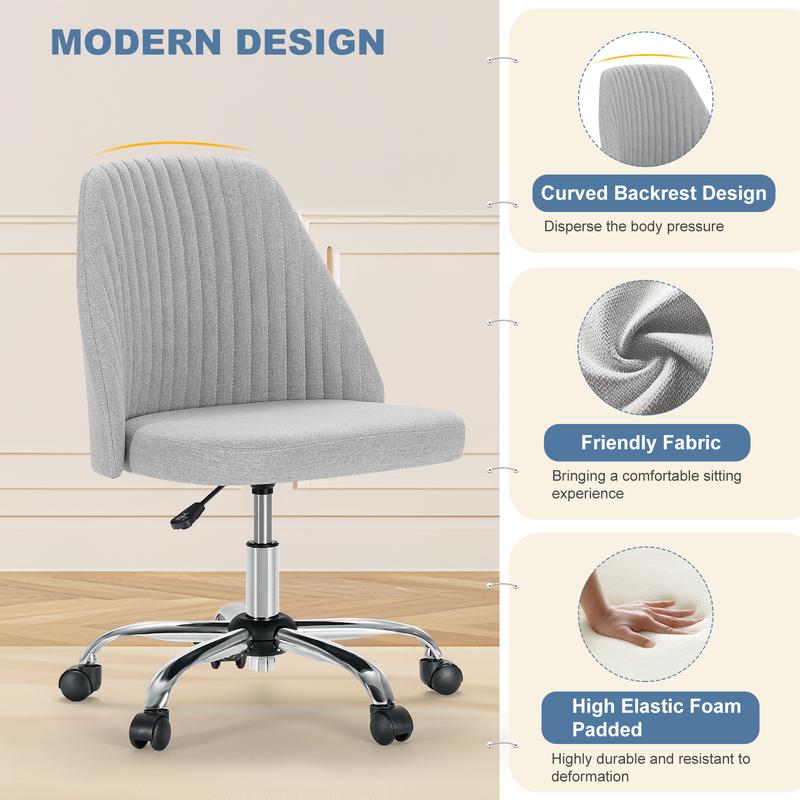 ·【Comfortable】This armless office chair features a sponge-filled seat cushion that is highly durable and resistant to deformation, providing essential comfort and support for long periods of use. Its curved backrest design offers excellent back support to help alleviate discomfort and prevent tension in the lumbar area.
