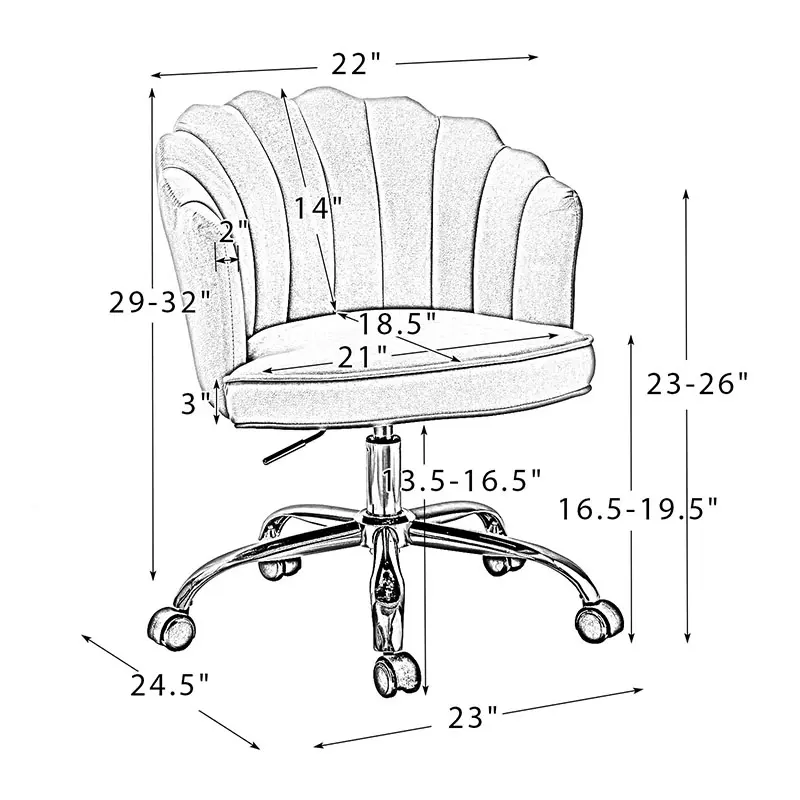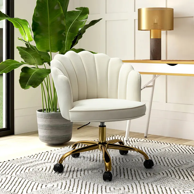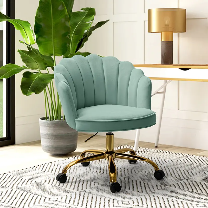This modern swivel office chair is a wonderful addition to any office or home office with its variety vibrant colors-velvet fabric upholstery that blends with any design taste. Designed in a chic style with flower shape back, tufting and piped edges lend a tailored touch, while foam fill offers comfort and support.