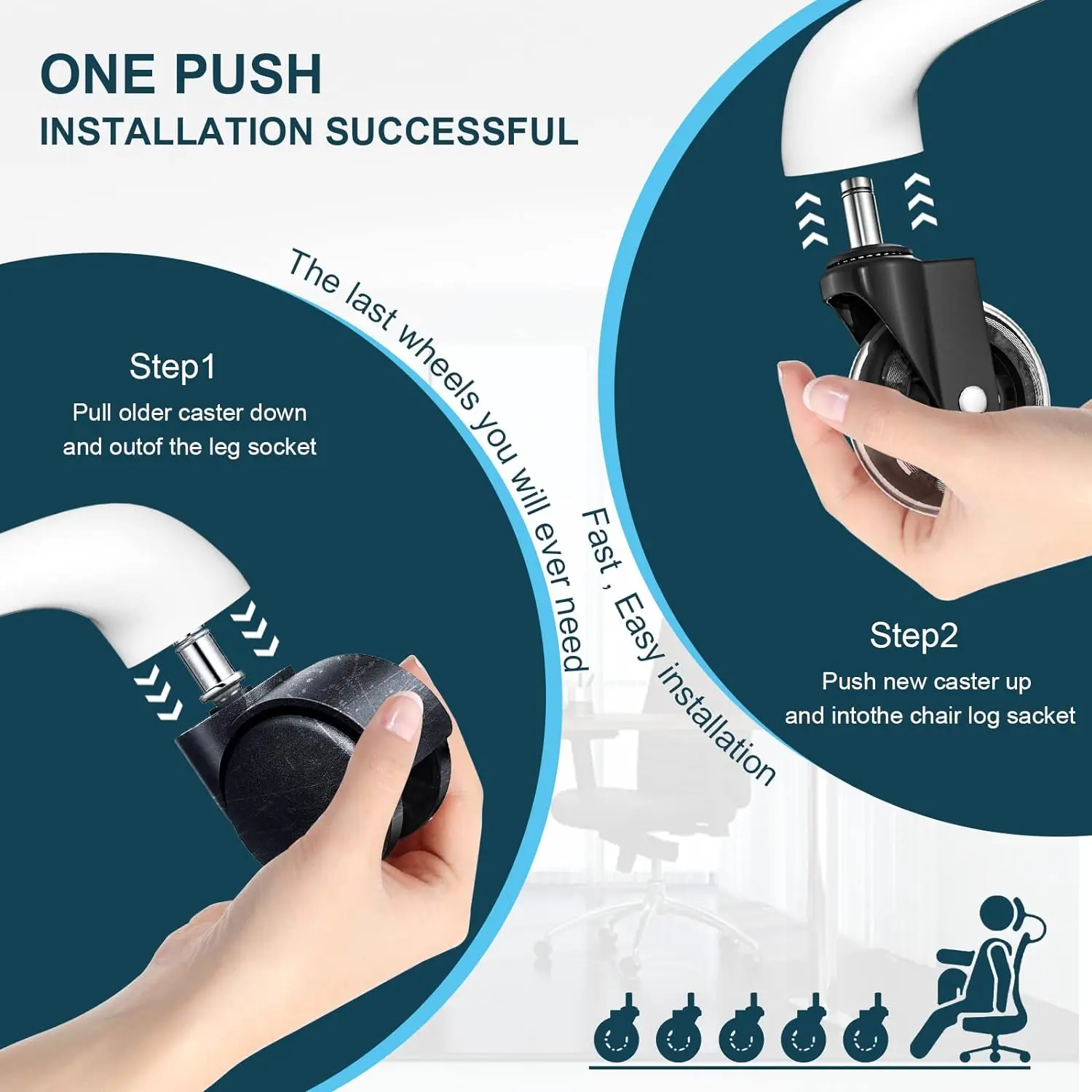 ·Easy to Install: Simply pull out your old wheels and push in these new ones for an instant upgrade to your desk or computer chair.