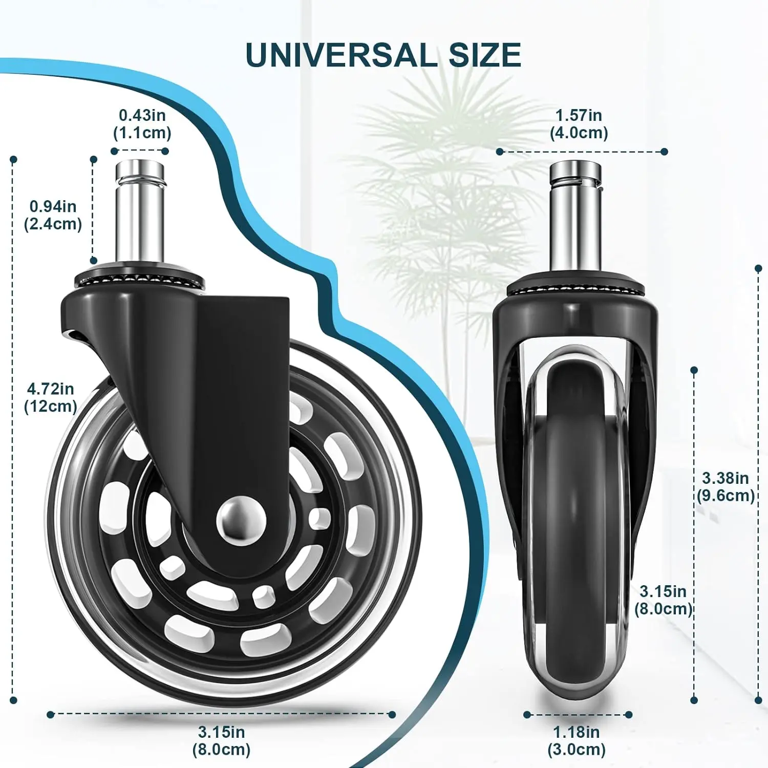 ·Universal Fit: With a stem size of 7/16" x 7/8", these rubber desk chair casters are compatible with almost all rolling chairs. Not fit IKEA chair.