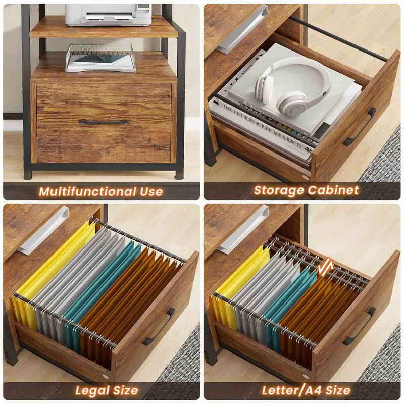 5. SEDETA 66-inch Home Office Desk with File Drawers and Power Outlets Printer Cabinet with Storage Shelves and Monitor Shelf, Game Table with LED Lights