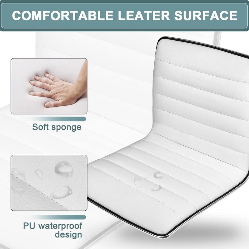 ·【Upholstered Leather Chair】- We use soft PU leather and high elastic foam to enhance the comfort and durability of the rolling chair. This office chair is waterproof and wear resistant and will not fade over time. Easy to clean.