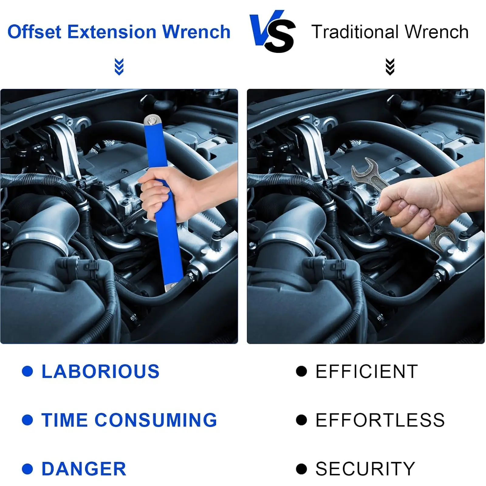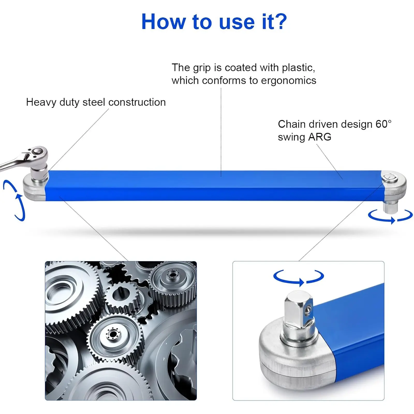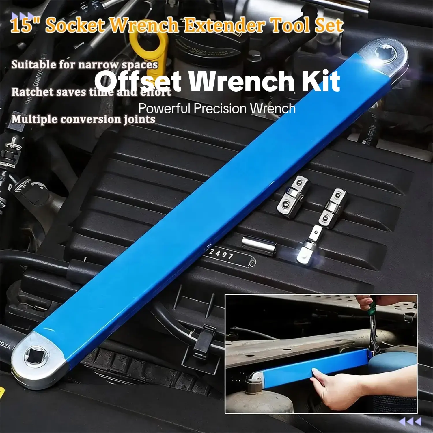 3/8 Inch Offset Extension Wrench,15 Inch Impact Ready Socket Wrench Extender Tool Set with 1/2", 1/4" and 3/8" Square Drive Adapters, Zero Degree Ratchet Tool for Car Blue, Multifunctional Wrench Set
