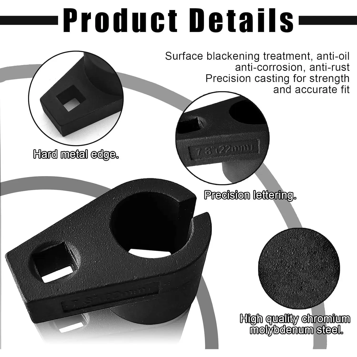 FEATURES: 7/8" (22mm) socket fits most oxygen sensors, works with any 3/8" drive ratchet or breaker lever, offset drive gate with wire links the sensor from the side to prevent damage to the wires.