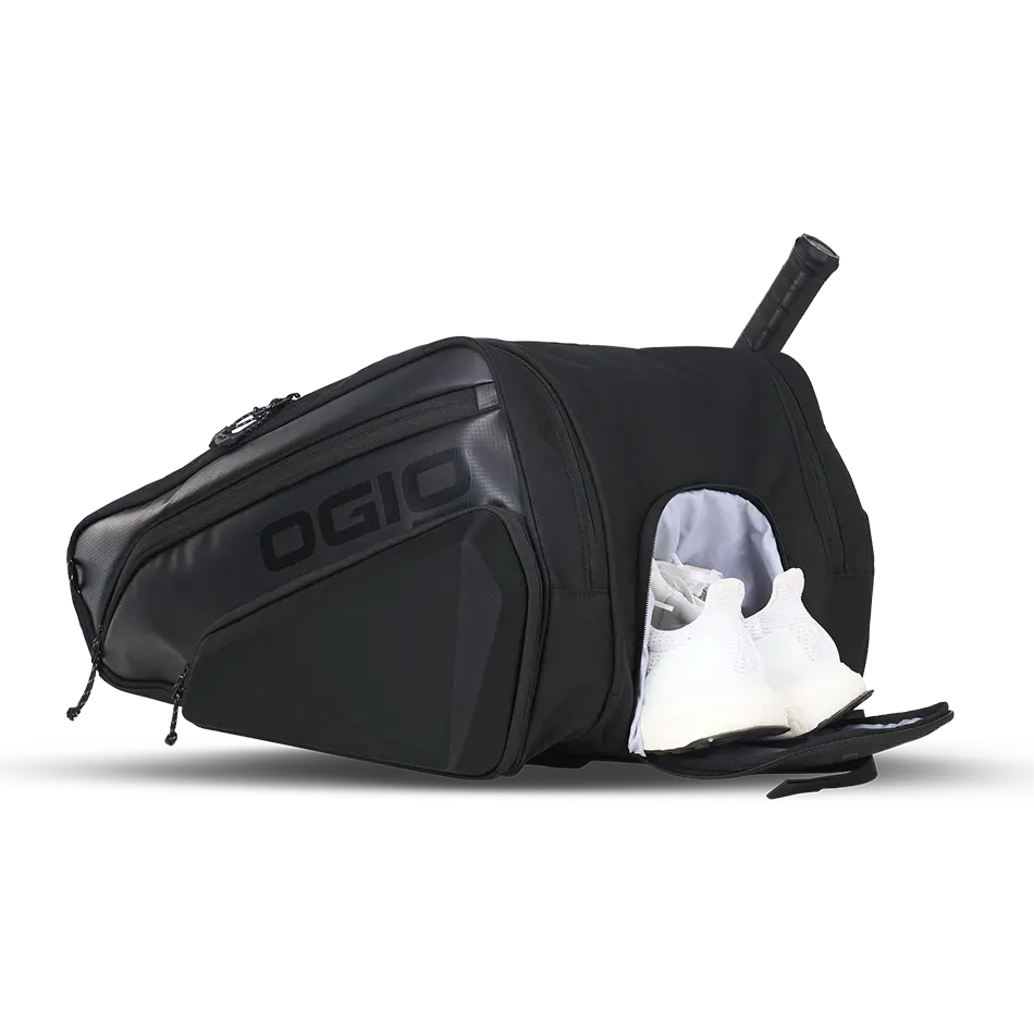 This limited-edition pickleball duffel is expertly designed to meet your storage and organizational needs. It features a crush proof vault pocket to keep valuables from damage, an expandable water bottle pocket, and additional interior compartments for optimal organization. This includes but is not limited to pocketry that fits up to 4 paddles and a dedicated shoe compartment, complete with ergonomically positioned shoulder straps. What makes this limited-edition duffel stand out from the crowd are the elevated materials and trims along with elite on-court organization.