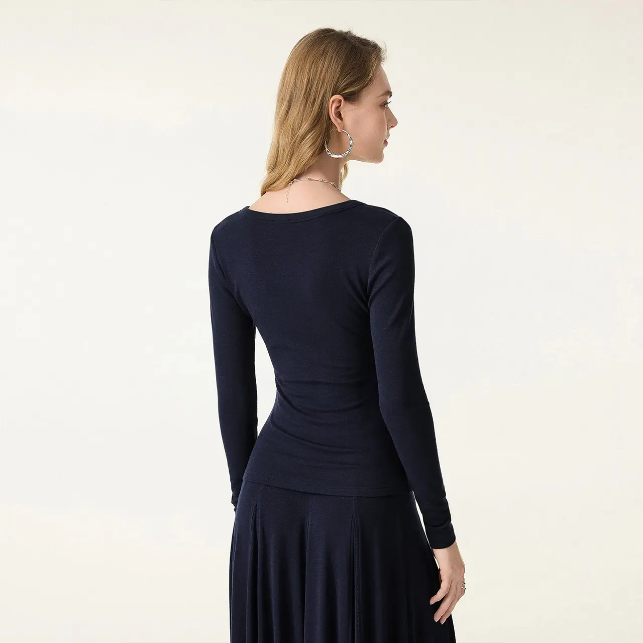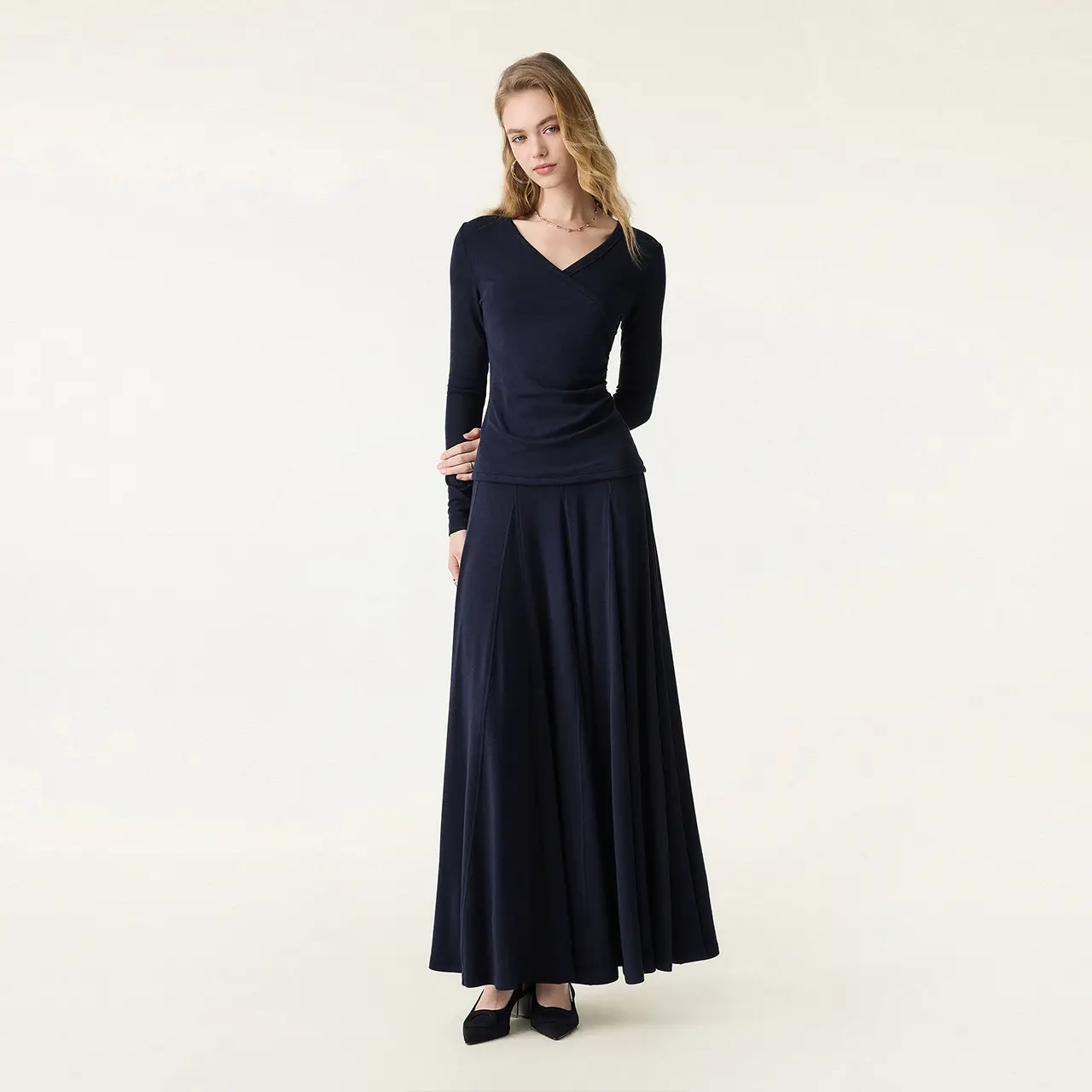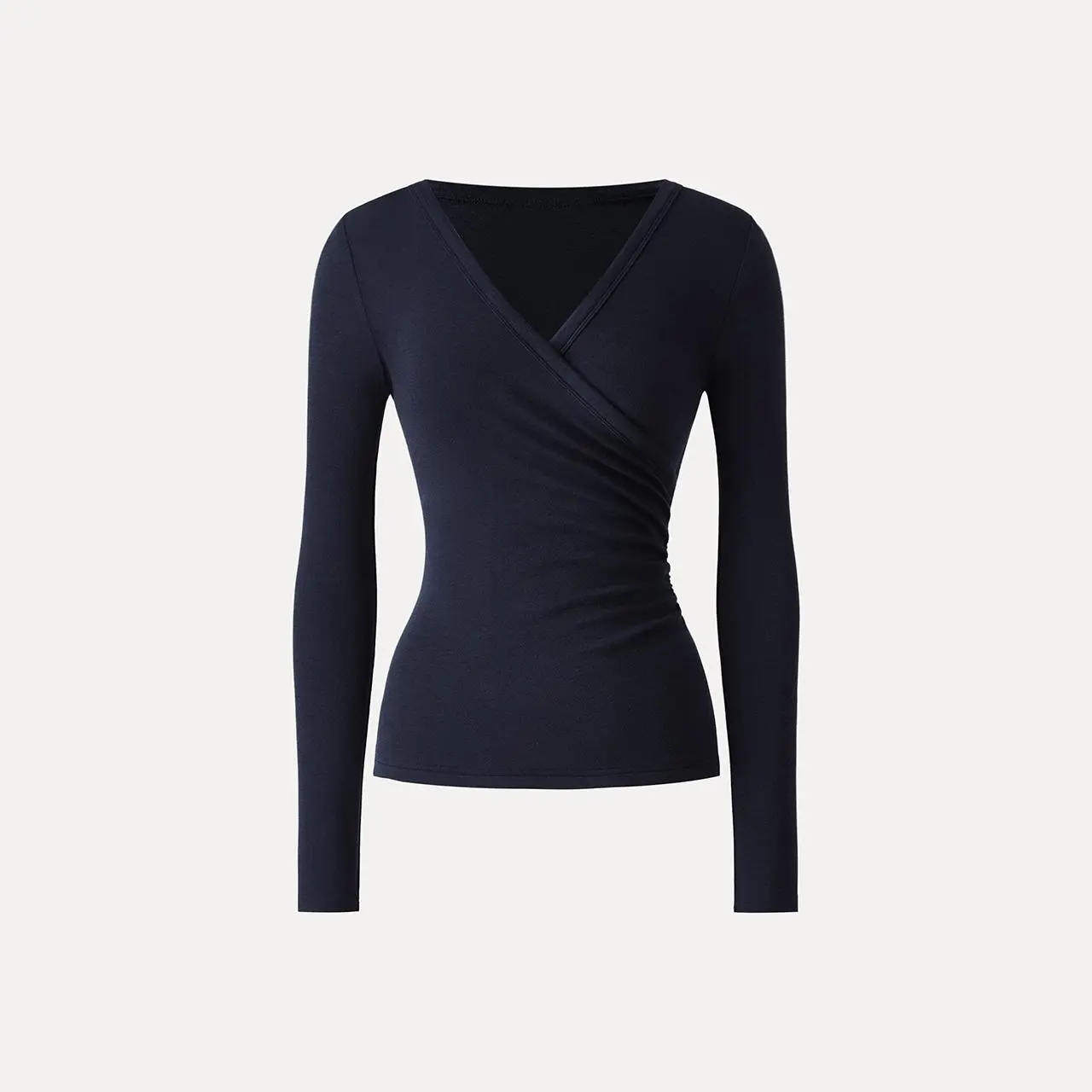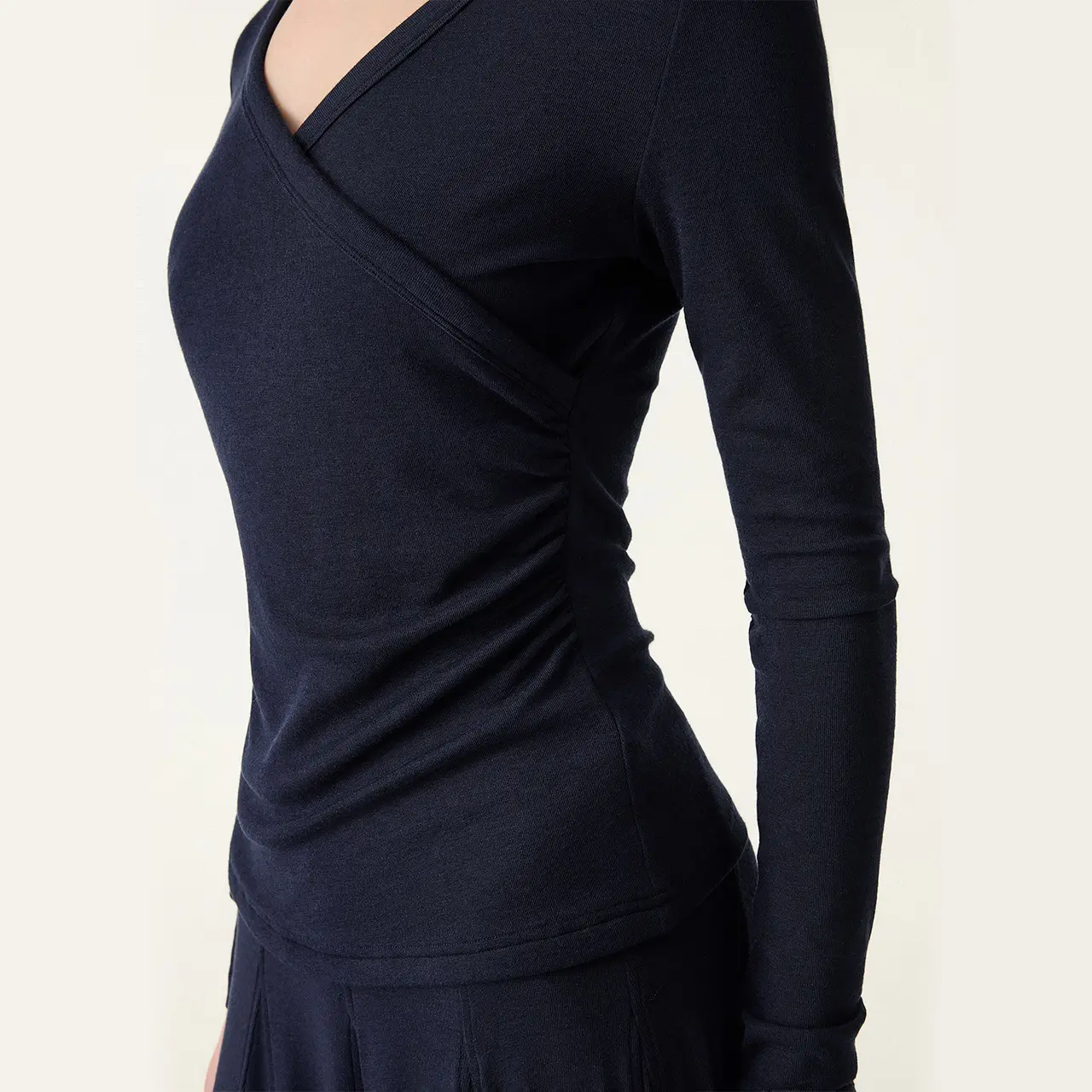 5. OGL Lyocell Wool Surplice Ruched Long Sleeve Top - Elegant V-Neck Design for Comfort and Style SpringStatements
