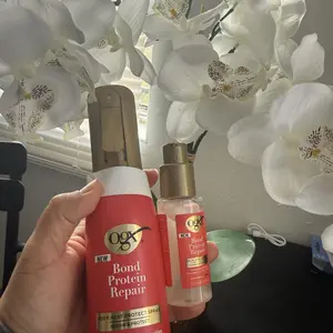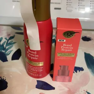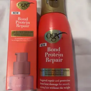 Meet the heat protection and styling duo for non-stop damage protection*, powered by OGX Bond Protein Complex and Dual-Action Repair Technology. Simply spray Bond Protein Repair 450°F Heat Protect Spray on damp hair before you blow out, and on dry hair before curling or ironing. Rub hands together and apply a small amount of Bond Protein Repair Sealing Serum evenly to damp or dry hair working from ends upwards.