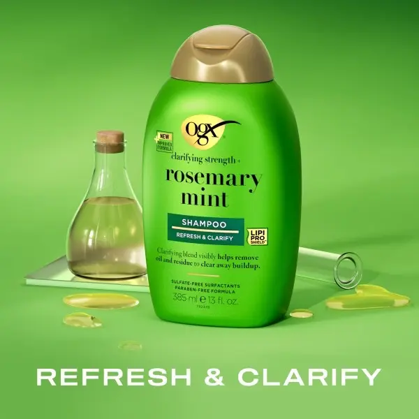 Visibly help remove oil & residue from your hair with OGX Clarifying Strength + Rosemary Mint Shampoo for oily hair.