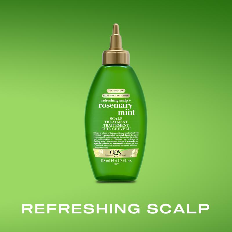 Experience the refreshing and clarifying effects of the OGX Extra Strength Refreshing Scalp + Rosemary Mint Scalp Treatment, and enjoy hair that looks and feels healthier with every use.