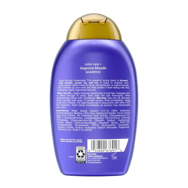 Try pairing our Impecca-Blonde Purple Toning Shampoo with our powerful purple toning drops, along with your favorite OGX conditioner.