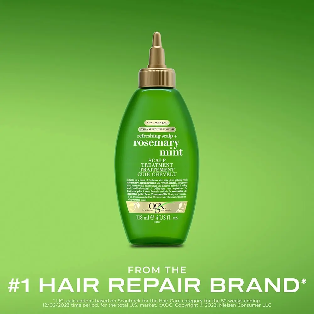 Extra Strength Rosemary Mint Scalp Treatment: Give your scalp an invigorating refresh & reset. This dry scalp treatment helps clear buildup from your oily hair & scalp to leave your hair looking shiny & soft. The leave-in treatment infused with rosemary oil & peppermint extract helps refresh & clarify your hair while leaving it smelling refreshingly clean, plus witch hazel, a gentle astringent known to help remove buildup without stripping your hair while nourishing the scalp.