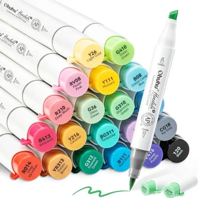 ·REFILLABLE INK FOR A LIFETIME OF CREATIVITY: With 51 Ohuhu popular colors available for refills now and more on the way, your creativity knows no bounds. Enjoy a wide range of hues and keep your markers going for years. Whether you're exploring the rich colors of Honolulu, Oahu, Kaala, or the bold hues of Molokai Series, they are refillable now. Switch between sets seamlessly and unlock endless artistic possibilities. Elevate your artwork with Ohuhu markers, designed for a lifetime of creativity.