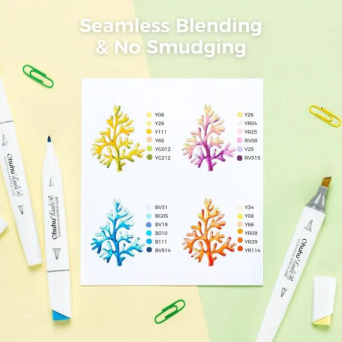 Ohuhu alcohol markers feature a high-quality ink formula that blends smoothly and seamlessly without smudging. Perfect for gradual color transitions between similar shades or sparking creativity to craft unique new colors!