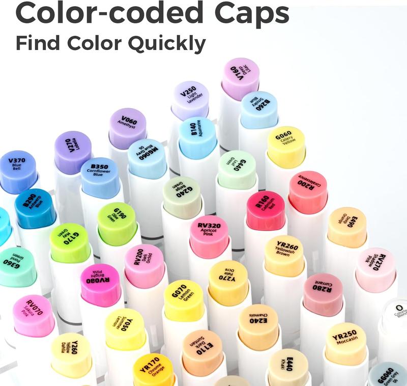 ·EASY IDENTIFICATION, ORGANIZATION & PORTABILITY: Don't waste time searching for the perfect color. Our markers come with color-coded caps to keep you organized and efficient. Plus, the free carrying case makes these markers perfect for any coloring adventure or as a thoughtful gift for any artist