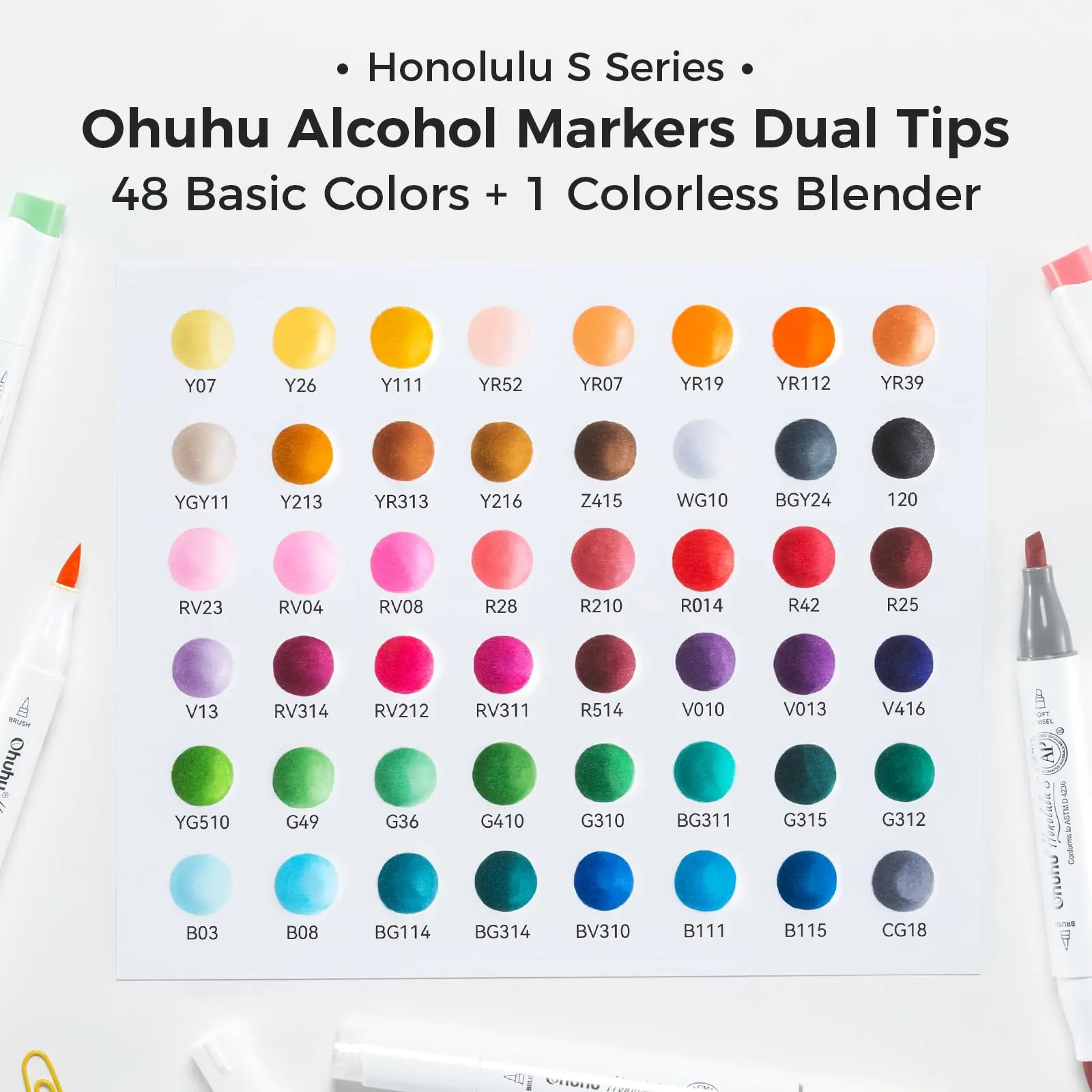 ·48 VIBRANT COLORS + 1 COLORLESS BLENDER : The rainbow is at your fingertips Explore 48 vibrant shades—plus a colorless blender for seamless blending—and let your imagination run wild. From relaxing coloring books to professional-level masterpieces, these brush markers are here to bring every idea to life.