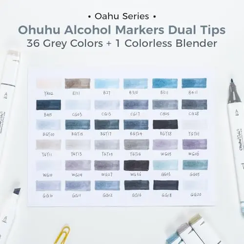 ·36 GORGEOUS, GRAY-TONE COLORS + 1 COLORLESS ALCOHOL MARKER BLENDER: This marker set is perfect for shading, layering, freestyling, and blending, which is must-have for any creative toolbox; The color spectrum is yours to explore with 36 brilliant grayscale shades to choose from, plus a colorless blender for better blending effects. From coloring books to professional masterpieces, our art markers will breathe life into your artwork