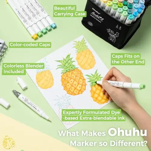 ·REFILLABLE INK FOR A LIFETIME OF CREATIVITY: With 51 Ohuhu popular colors available for refills now and more on the way, your creativity knows no bounds. Enjoy a wide range of hues and keep your markers going for years to come. Whether you're exploring the rich colors of Honolulu, Oahu, the Kaala, or the bold hues of Molokai Series, they are refillable now. Switch between sets seamlessly and unlock endless artistic possibilities