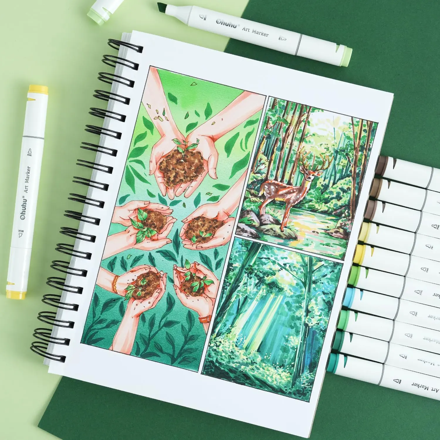 ·High-Quality Drawing Paper - Marker paper made from 90 lb/150 gsm FSC-certified paper. Ohuhu's marker book is durable and sustainable. Despite its unique design that tones down paper whiteness, the smooth and even paper surface pairs exceptionally well with Ohuhu alcohol markers. While ink drying time may vary slightly compared to regular paper, rest assured, even budding beginners don't need to fret about ink bleeding.