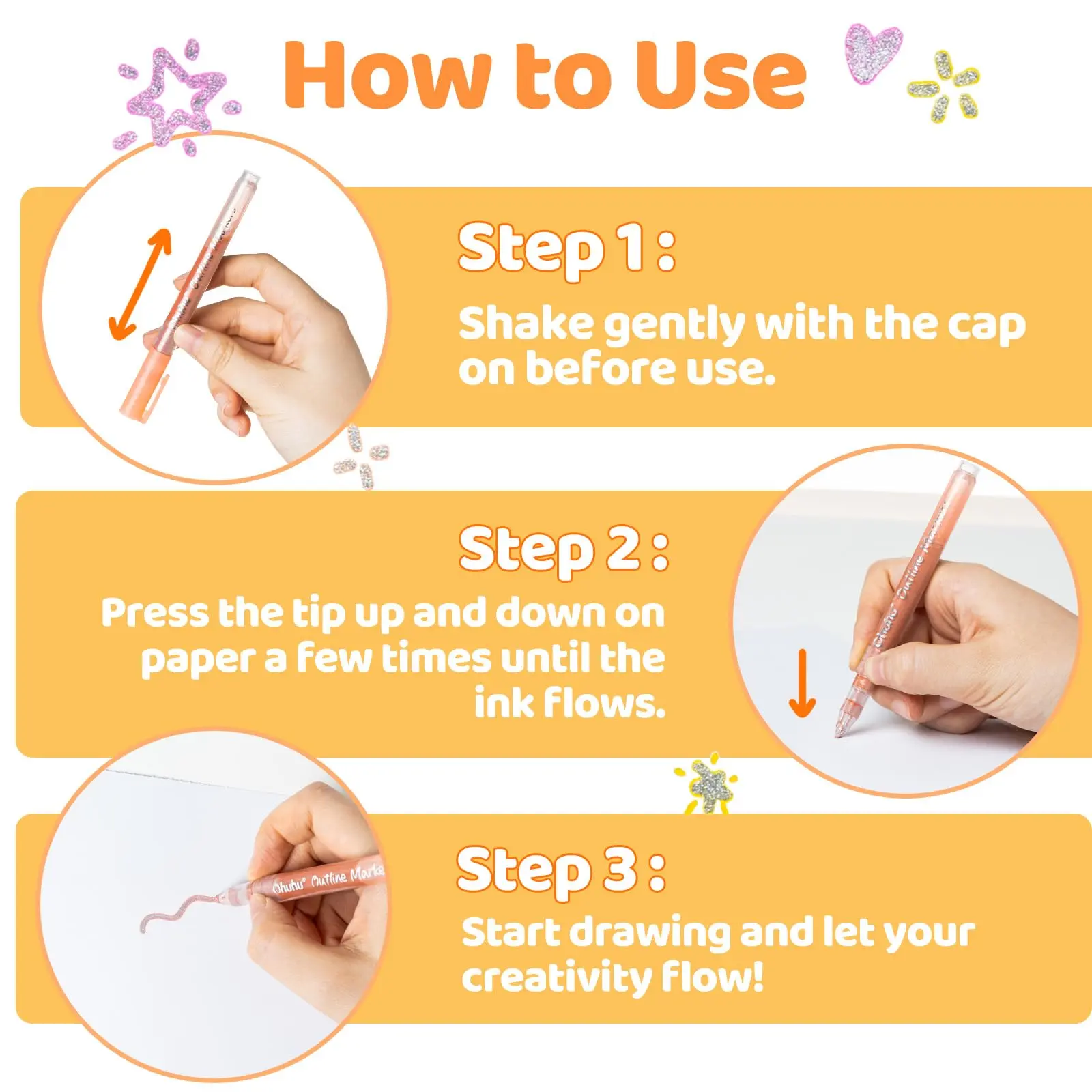 ·EASY TO USE: For best results, shake the marker well with the cap securely on before use. To start the ink flow, gently press the tip onto the paper several times. Note: The more thoroughly the marker is shaken, the more pronounced the double-line contour effect will be. Featuring a unique automatic design, this outline marker creates distinctive double-line outlines.