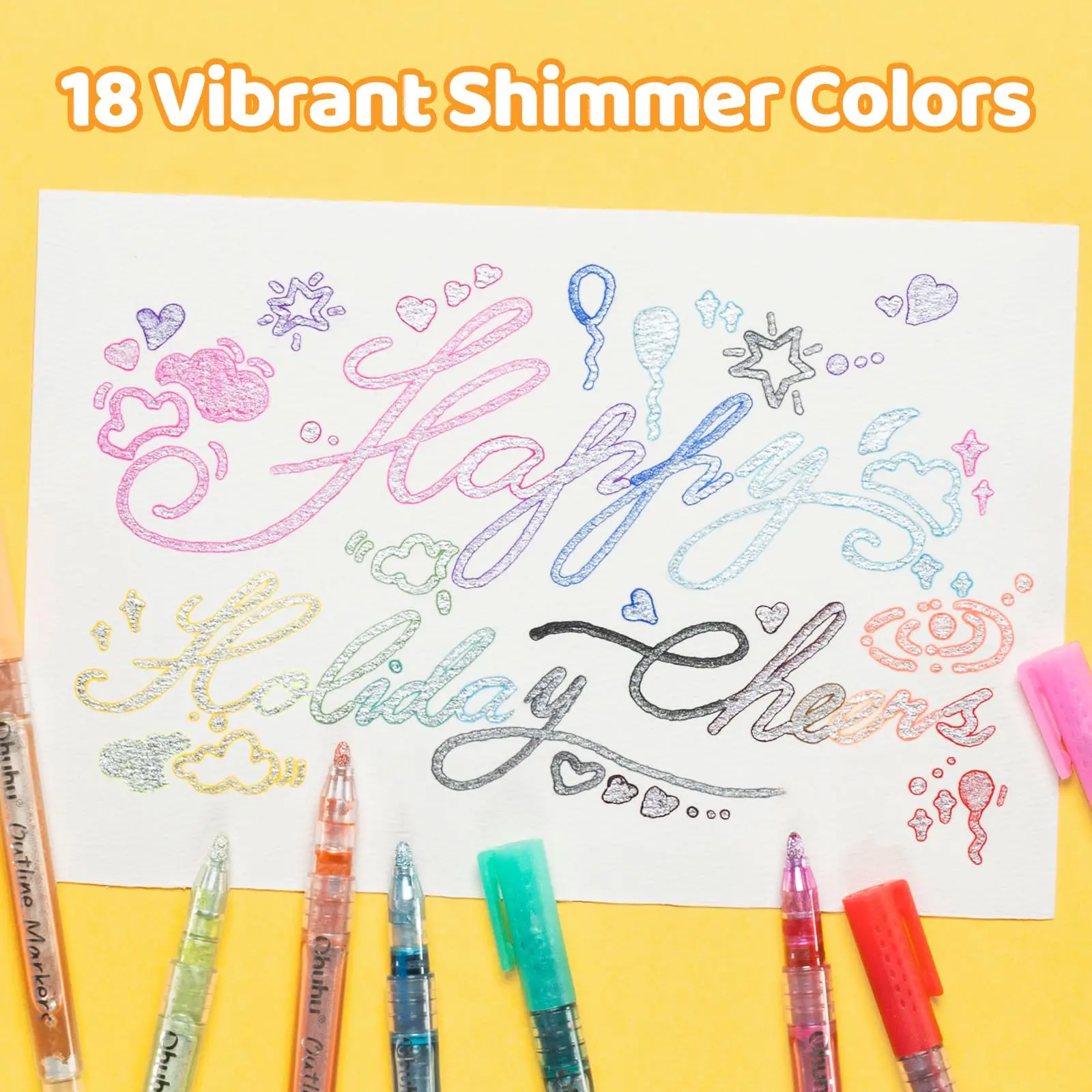 Ohuhu Outline Markers - 18 Vibrant Shimmer Colors