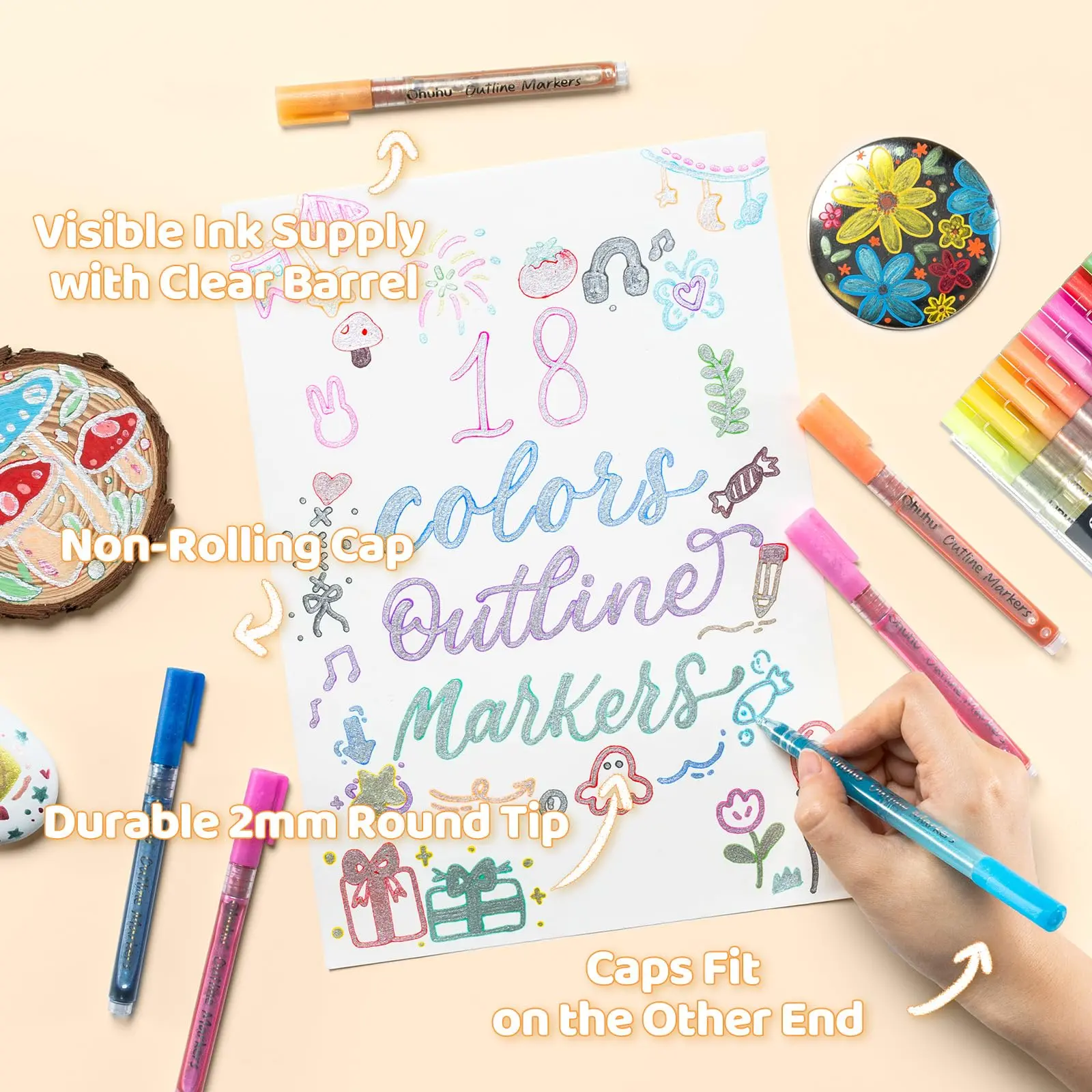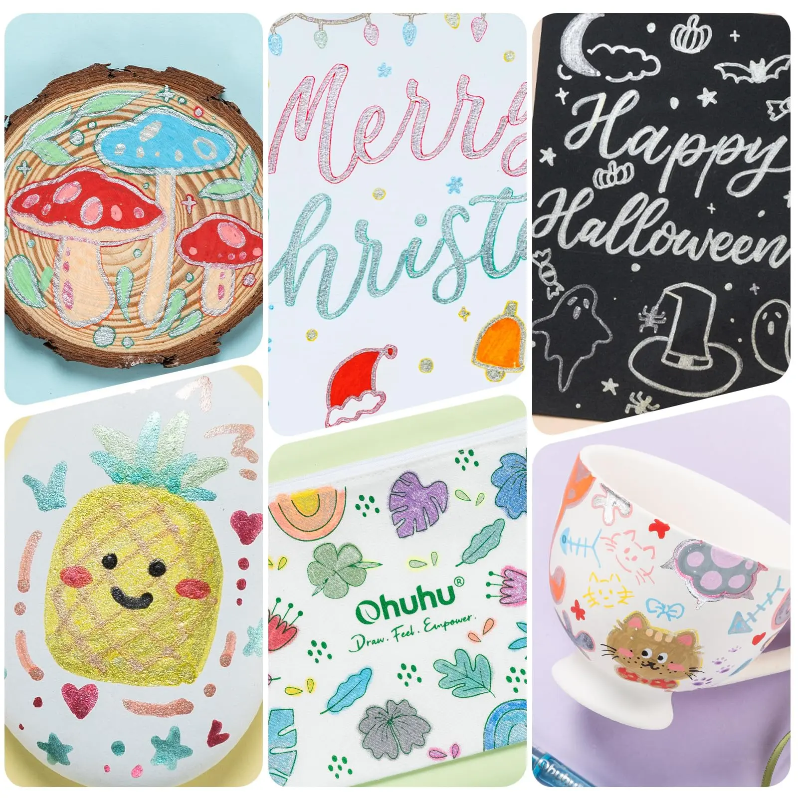 ·FUN MARKERS FOR ALL: Make intersting cards for your important ones and bring the joy to everyone. Write the sweet words using Ohuhu outline markers on the greeting cards, birthday cards and all festival cards.