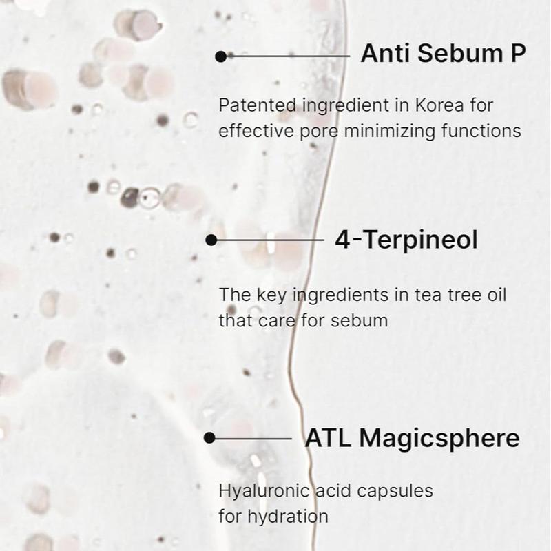 ·TEA TREE EXTRACT: 4-Terpineol (sebum controlling ingredient from Tea Tree Extract) controls the sebum production during the daytime to prevent breakouts and other greasy skin problems